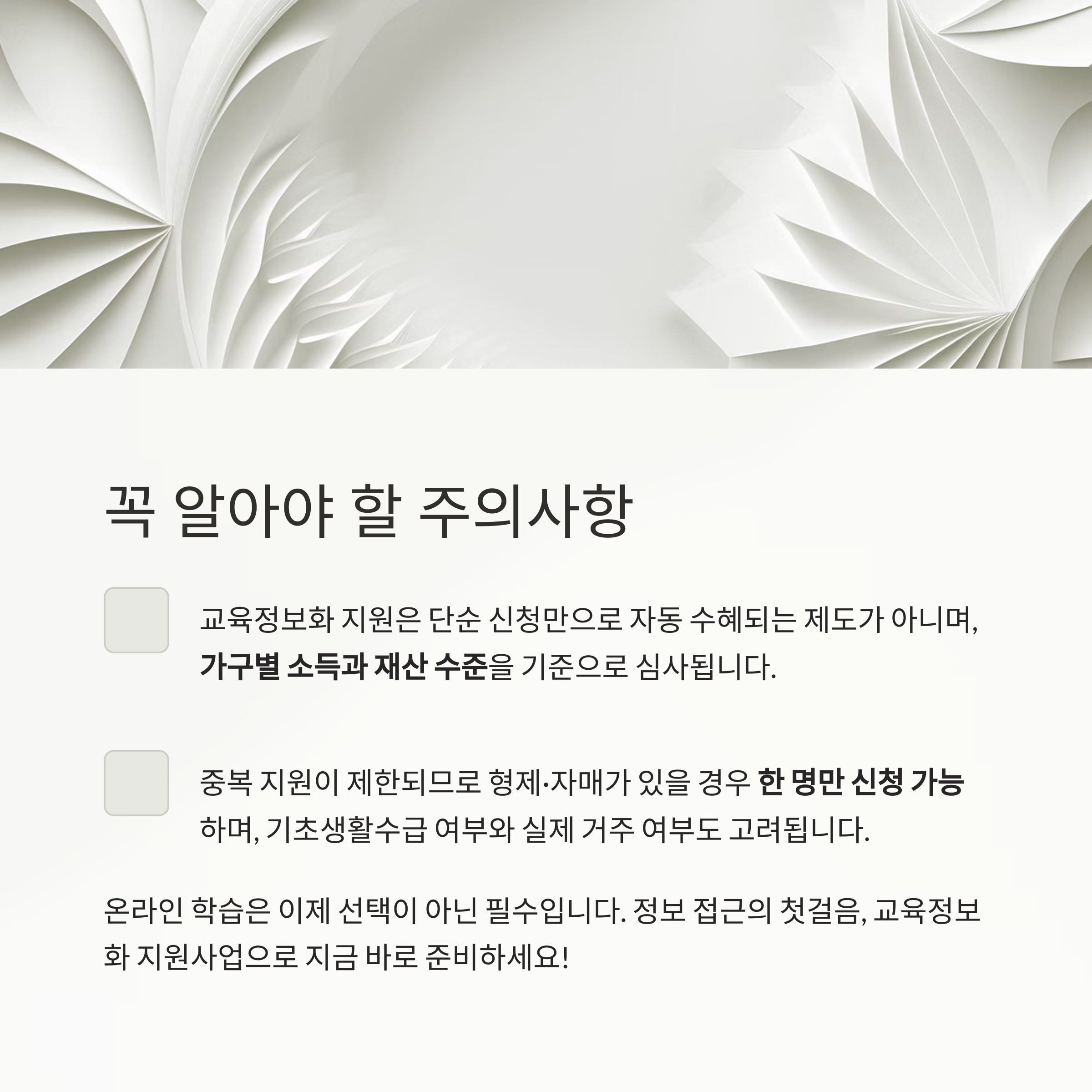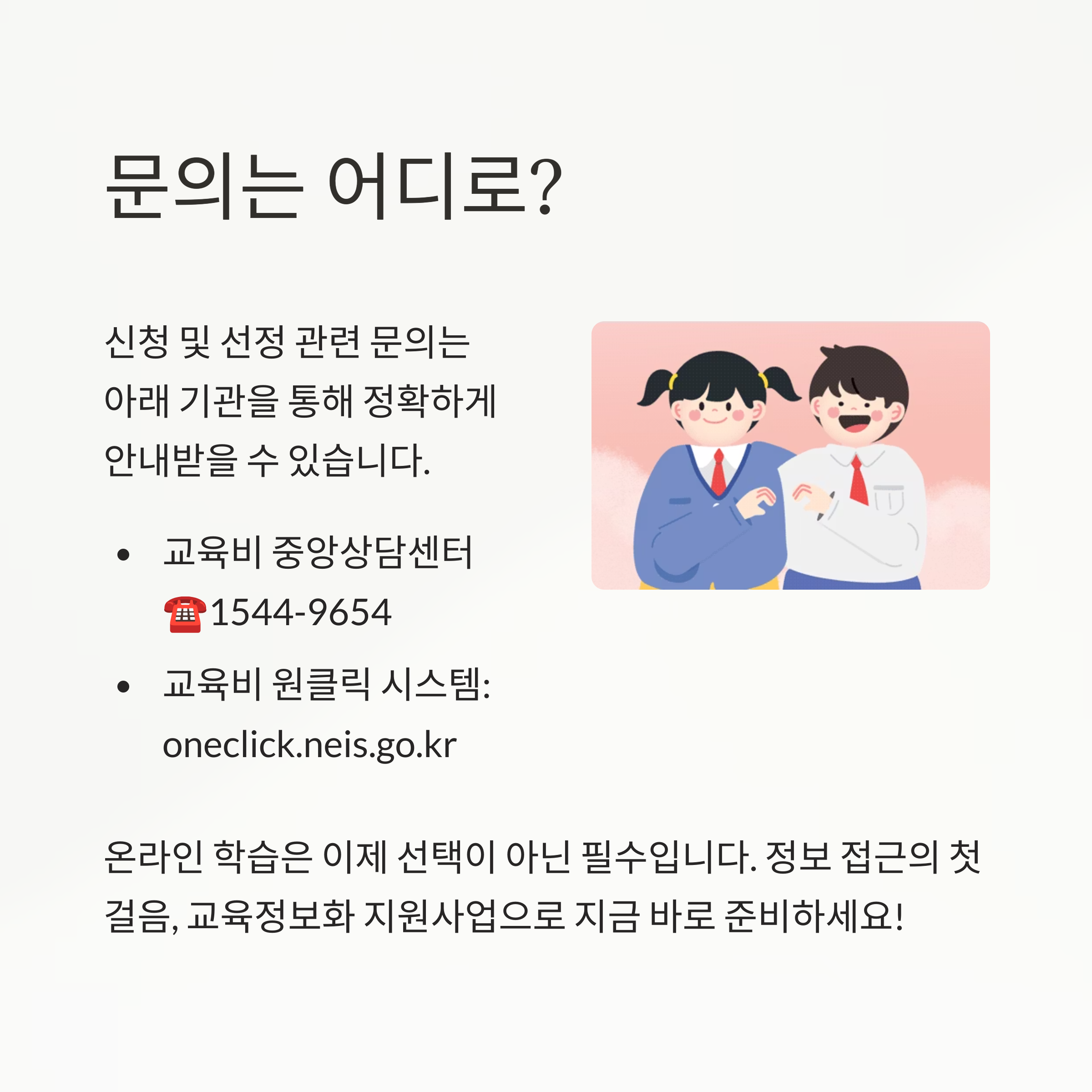 교육정보화 지원은 단순 신청만으로 자동 수혜되는 제도가 아니며, 가구별 소득과 재산 수준을 기준으로 심사됩니다.
