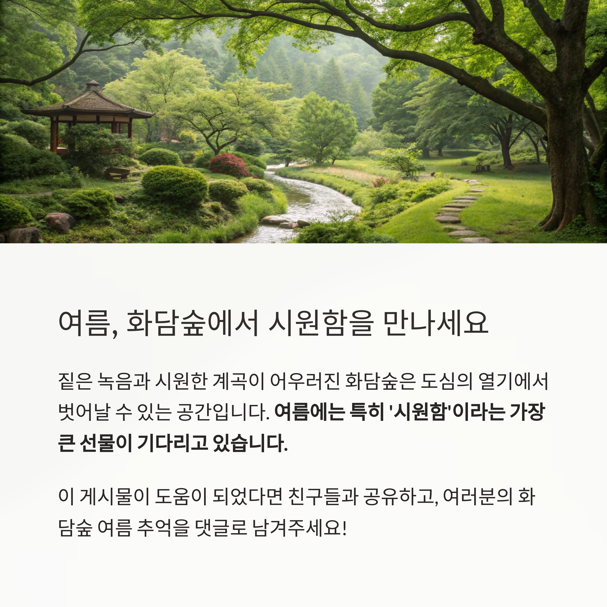 "여름날의 화담숲은 자연이 준비한 최고의 휴식처입니다."