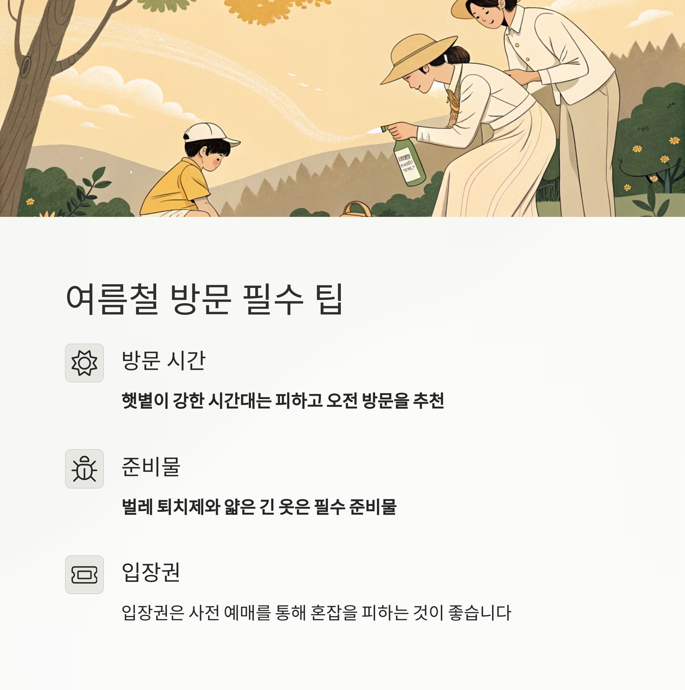 나들이를 위한 여름철 방문 팁