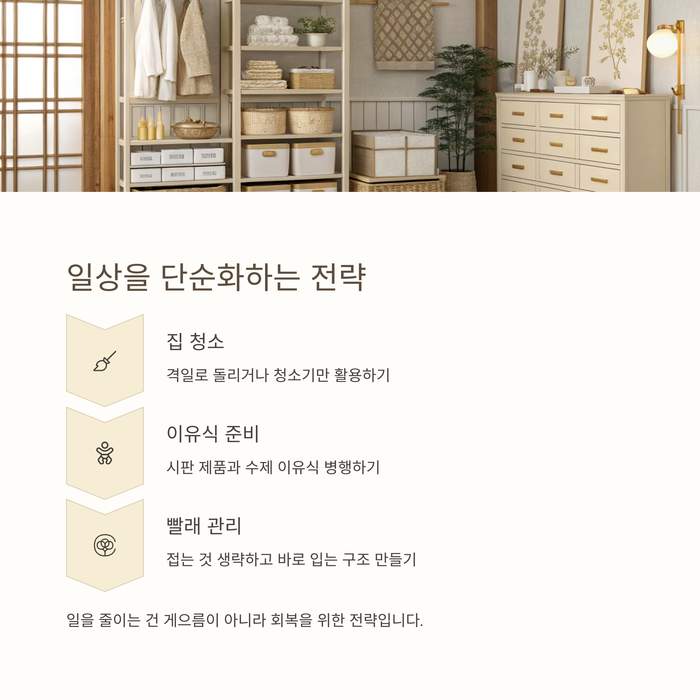 | 이유식 준비 | 시판 제품 + 수제 병행 |