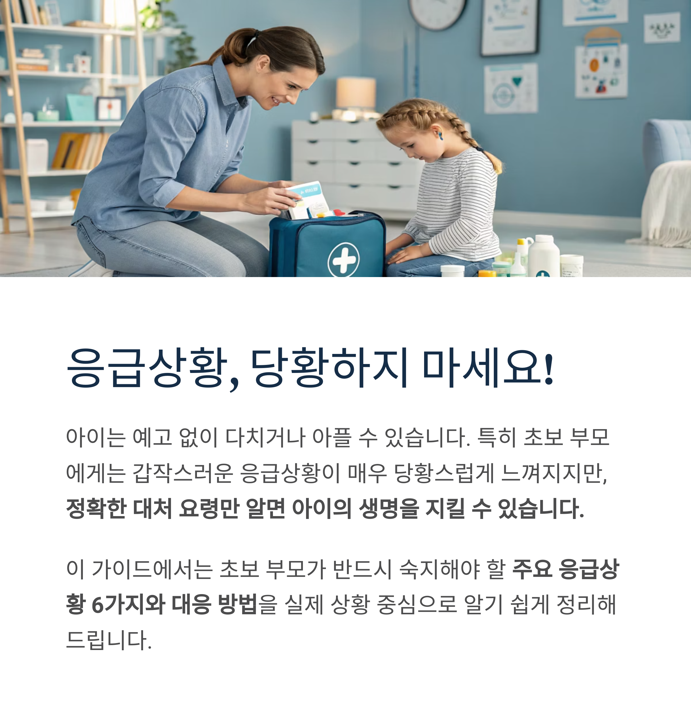 특히 초보 부모에게는 갑작스러운 응급상황이 매우 당황스럽게 느껴지지만,