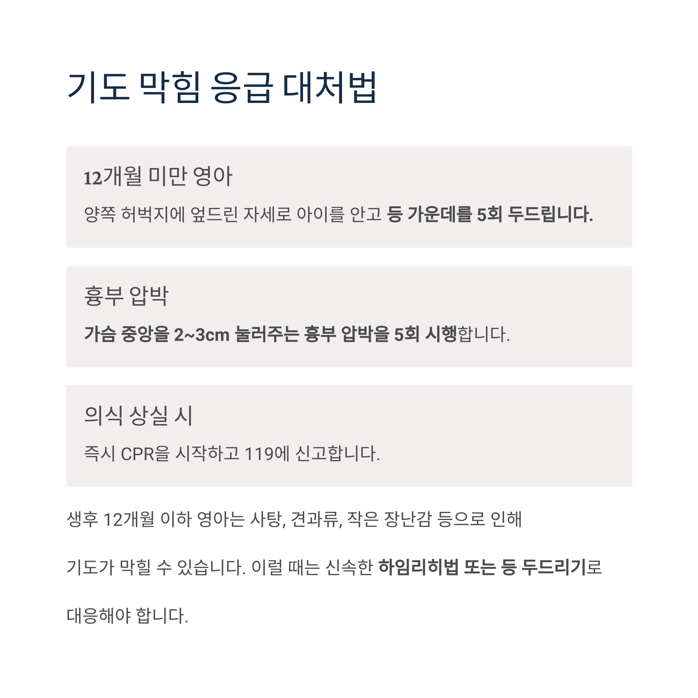아이가 갑자기 숨을 쉬지 않아요: 기도 막힘 대응법