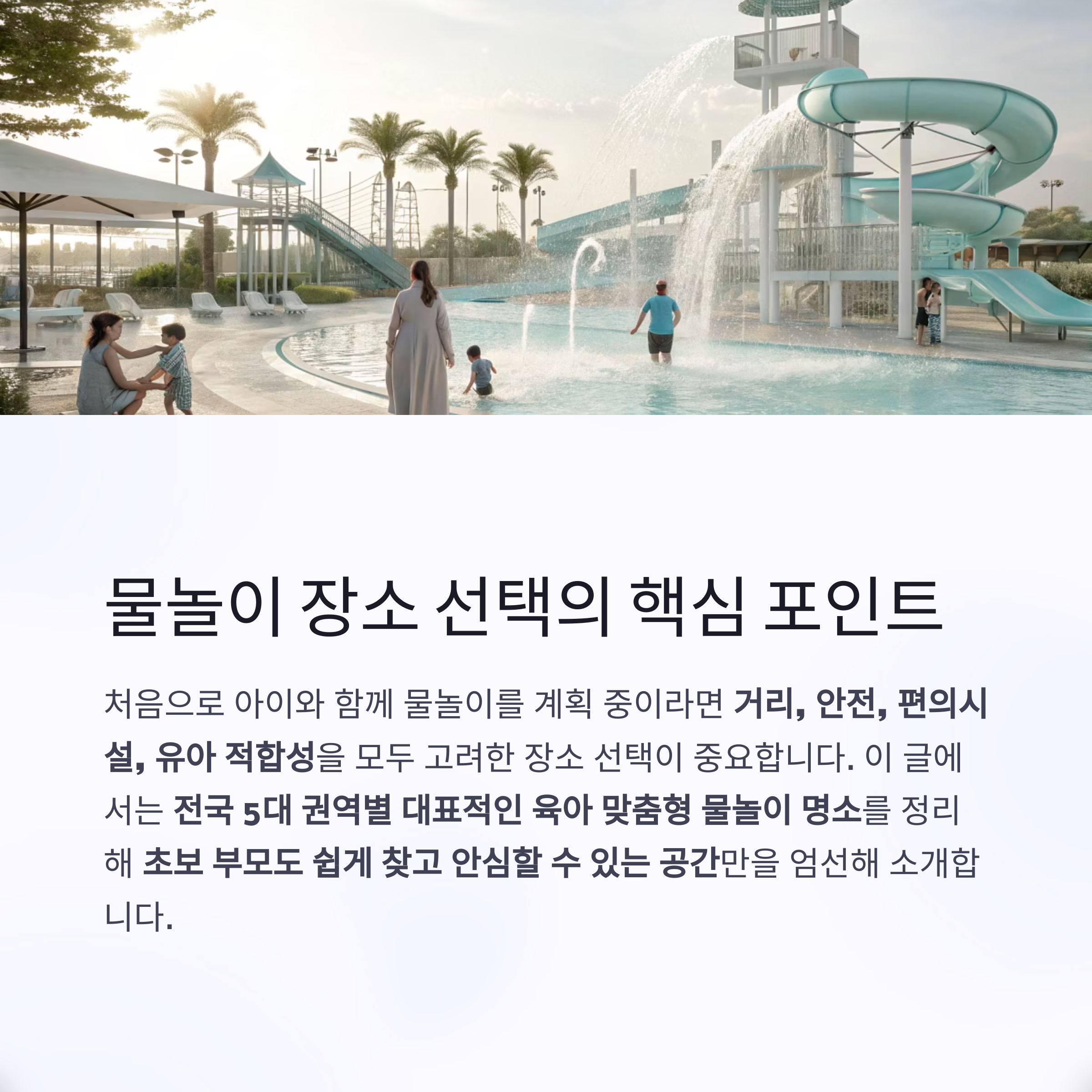 이 글에서는 전국 5대 권역별 대표적인 육아 맞춤형 물놀이 명소를 정리해