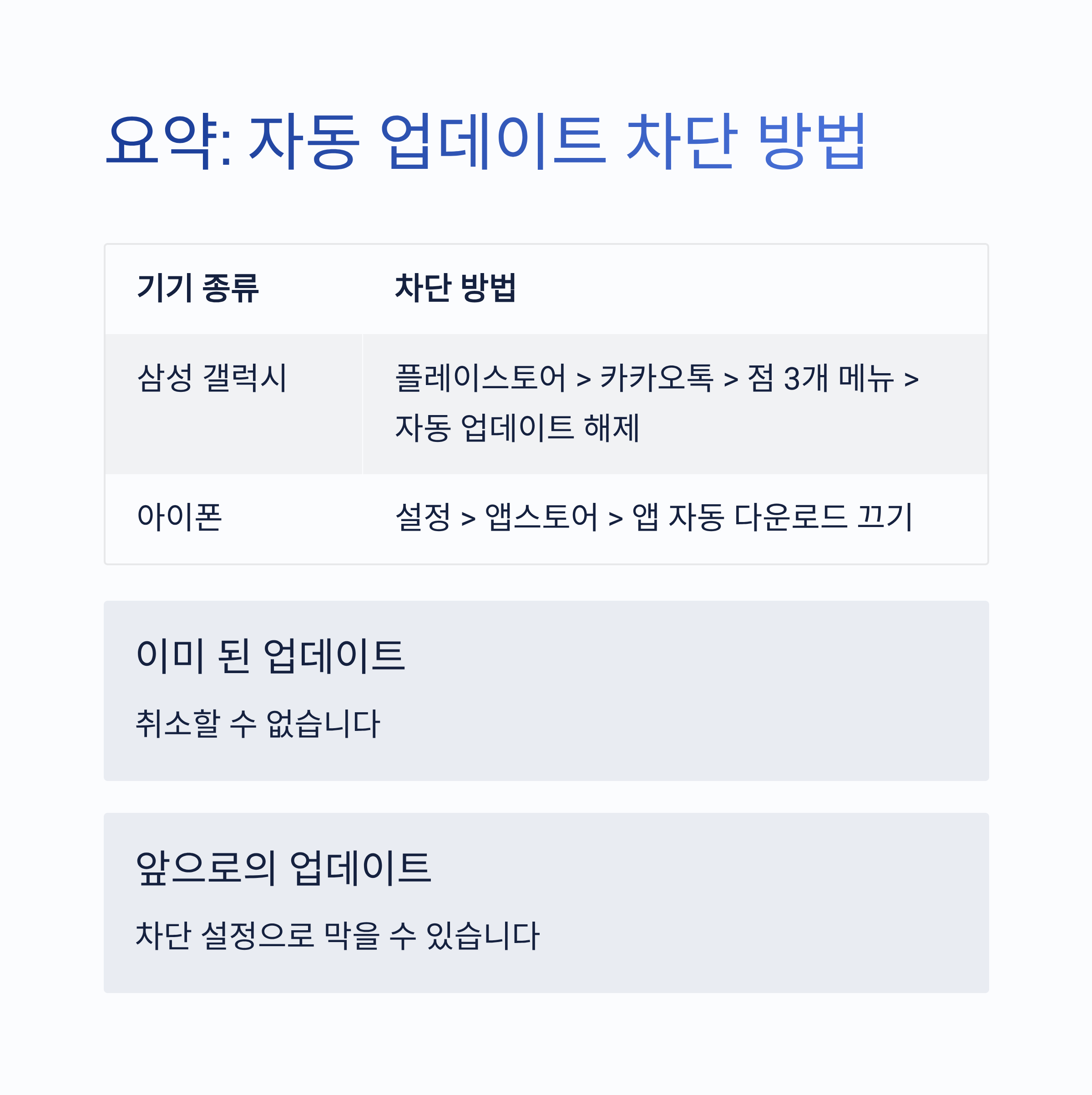 📌 아이폰은 앱 개별 설정으로 자동 업데이트를 막는 기능은 제한적입니다.