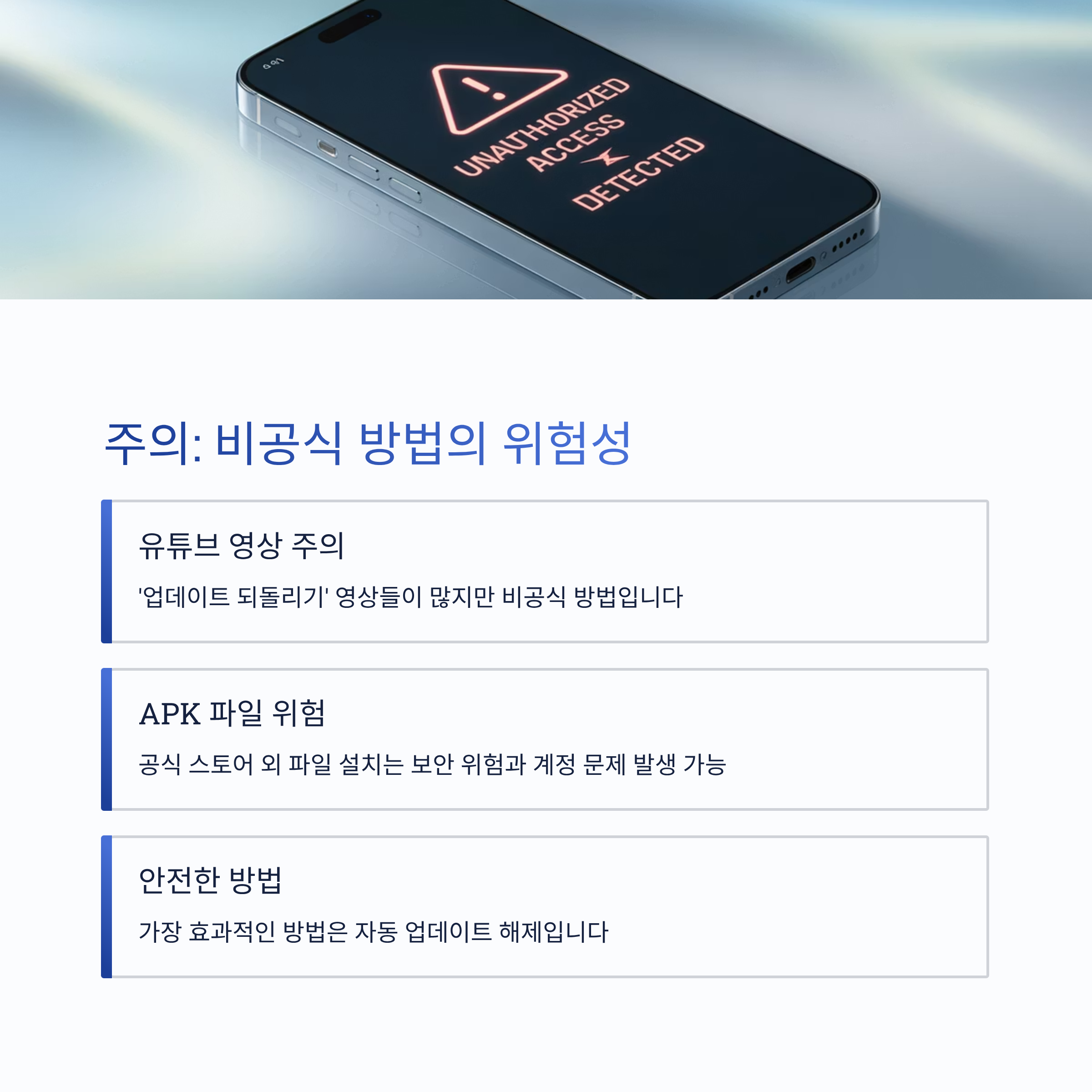 🔐 가장 안전하고 효과적인 방법은 ‘자동 업데이트 해제’입니다.