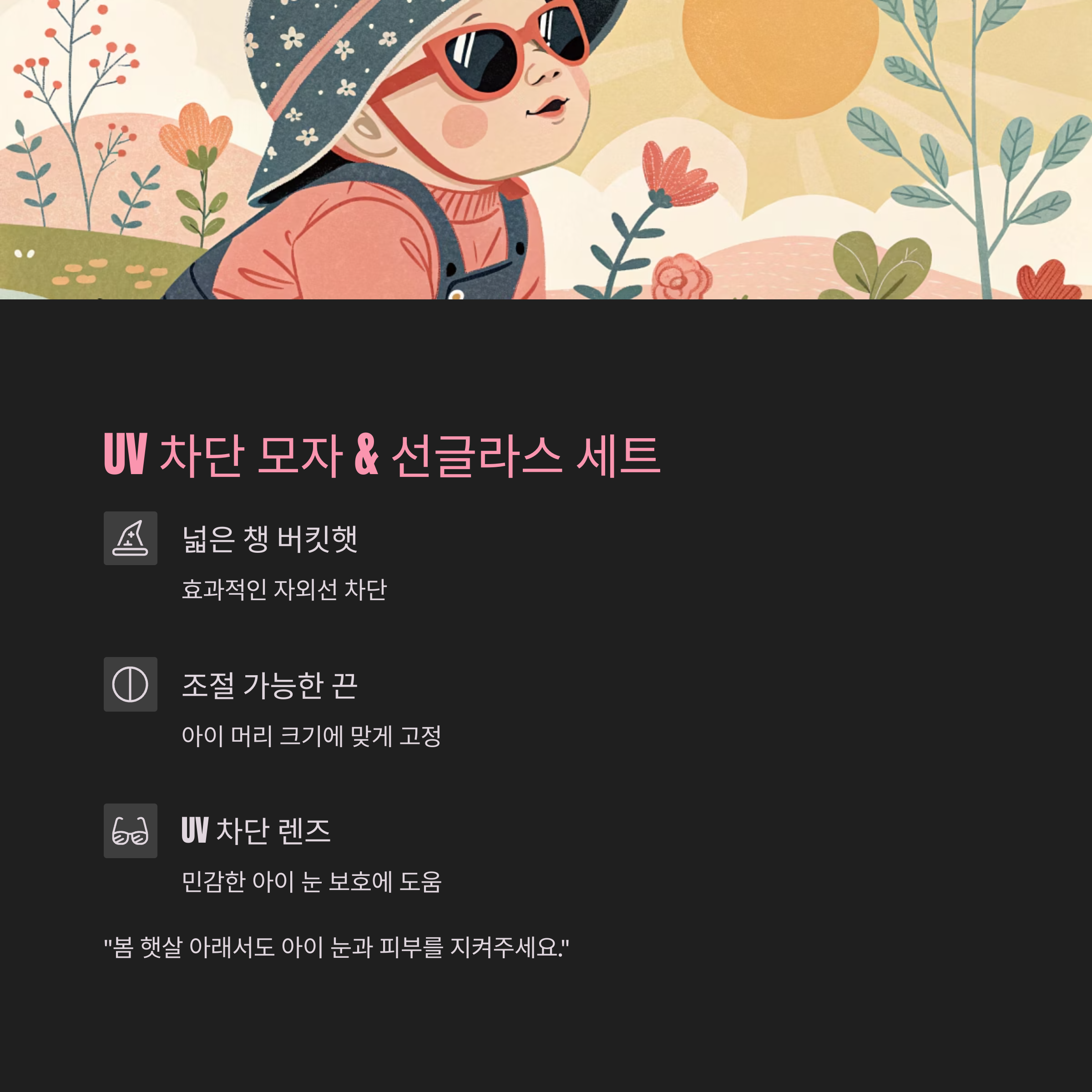 "봄 햇살 아래서도 아이 눈과 피부를 지켜주세요."