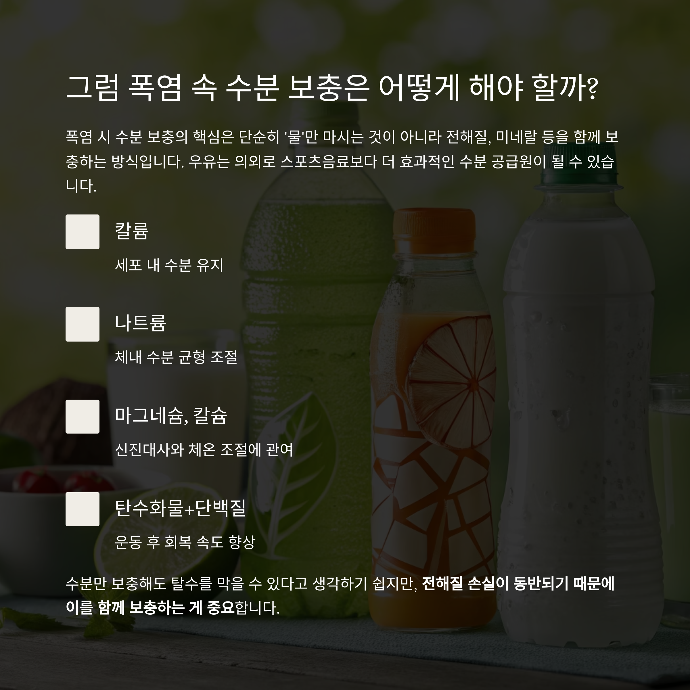 폭염 시 수분 보충의 핵심은 단순히 ‘물’만 마시는 것이 아니라