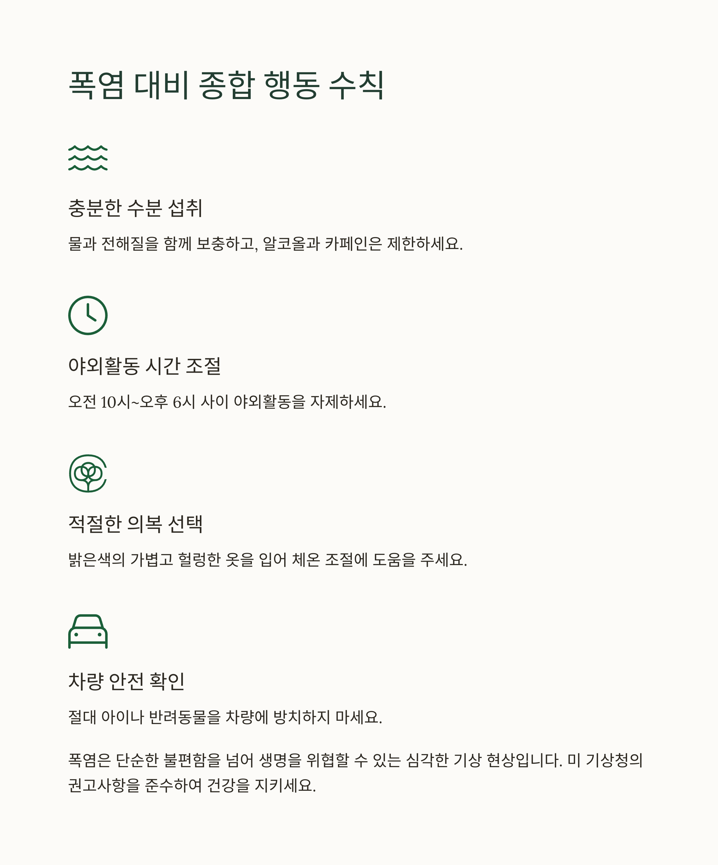 “밝은색 옷 착용”, “충분한 수분 섭취” 등을 포함했으며,