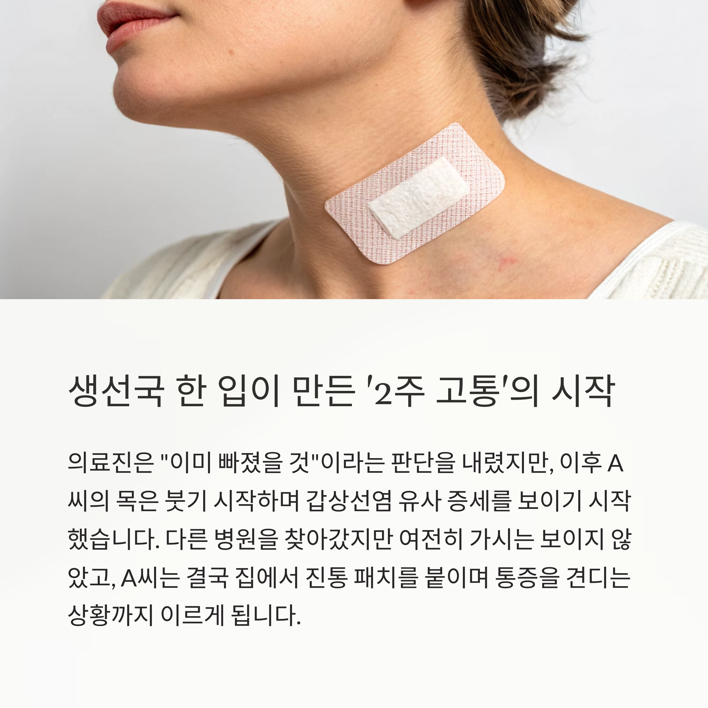 이후 A씨의 목은 붓기 시작하며 갑상선염 유사 증세를 보이기 시작했습니다.