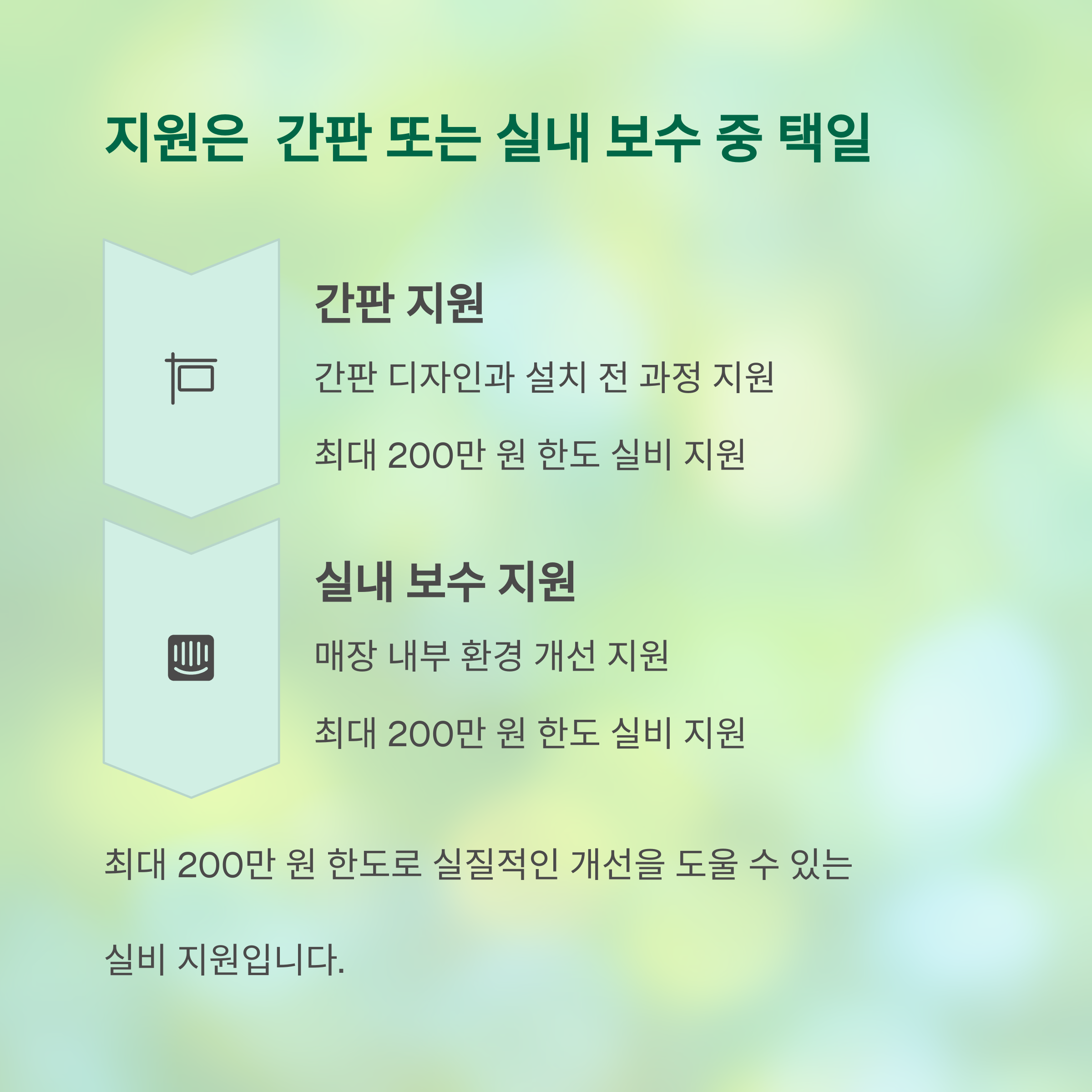 간판 지원과 실내 보수 지원으로 나누어 운영되며,