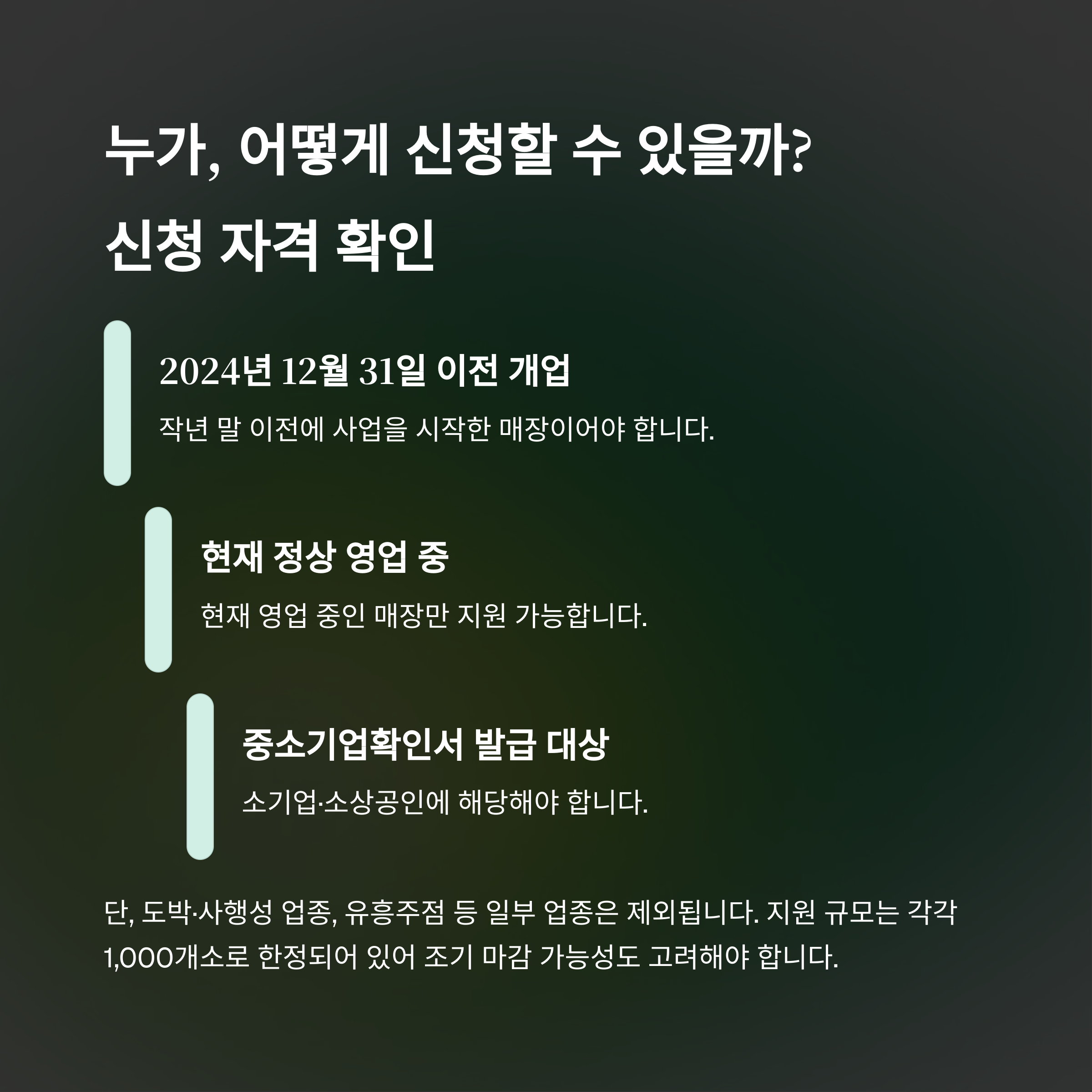 단, 도박·사행성 업종, 유흥주점 등 일부 업종은 제외됩니다.