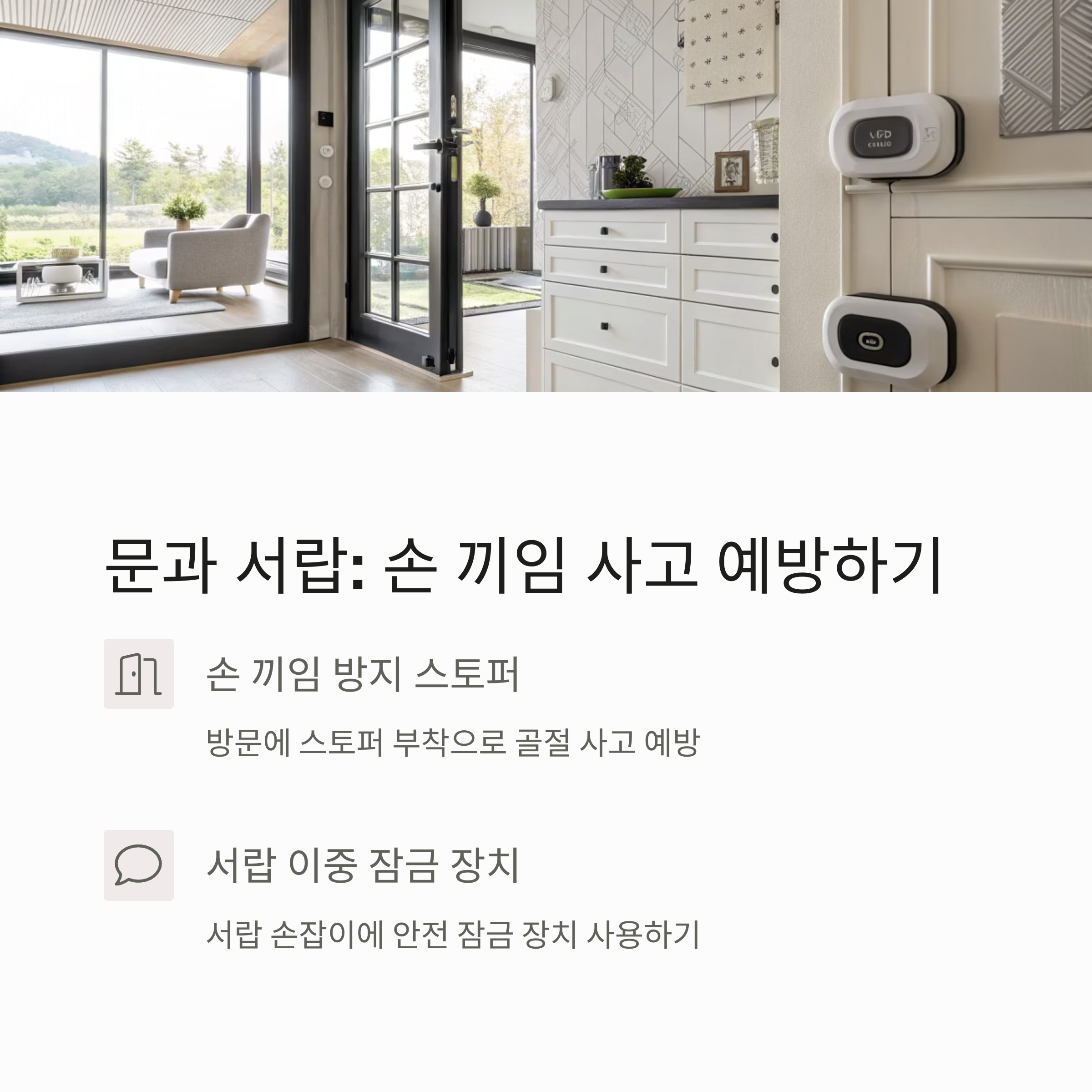 - 방문에는 손 끼임 방지 스토퍼 부착