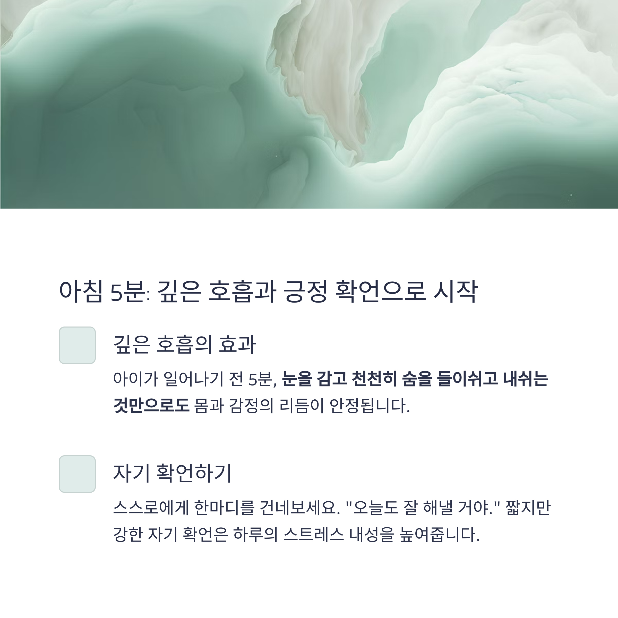 1. 아침 5분: 깊은 호흡과 긍정 확언으로 시작