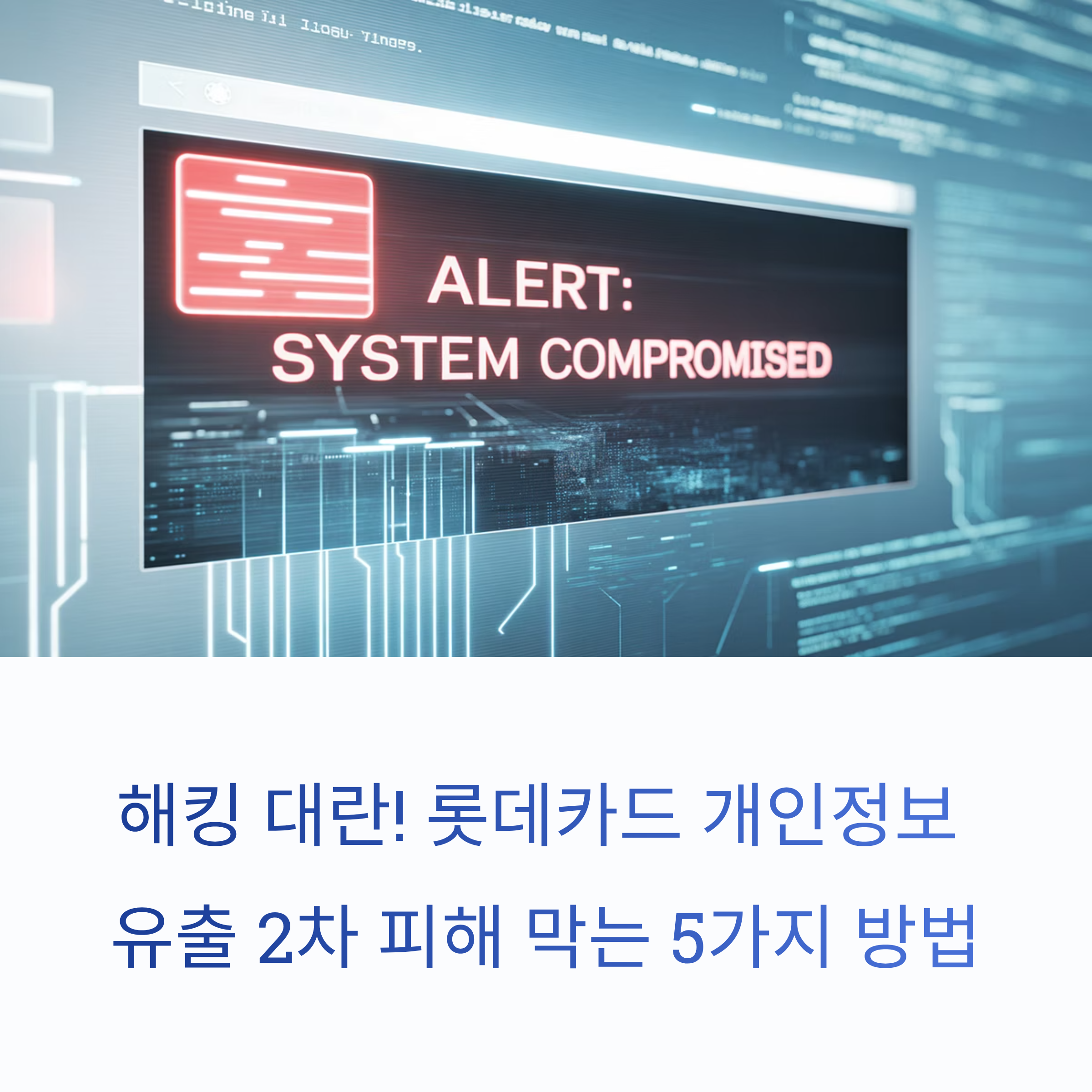 2025년 롯데카드 해킹 사건은 단순한 카드 정보 유출을 넘어, 보이스피싱·스미싱 등 2차 금융 범죄로까지 이어질 수 있다는 점에서 많은 이들의 우려를 낳고 있습니다. 실제로 카드번호·CVC까지 함께 유출된 고객들의 경우, 그 피해 가능성은 상당히 높은 편입니다. 이번 글에서는 유출 이후 내 개인정보를 지키기 위한 5가지 핵심 대응 전략을 소개합니다.
