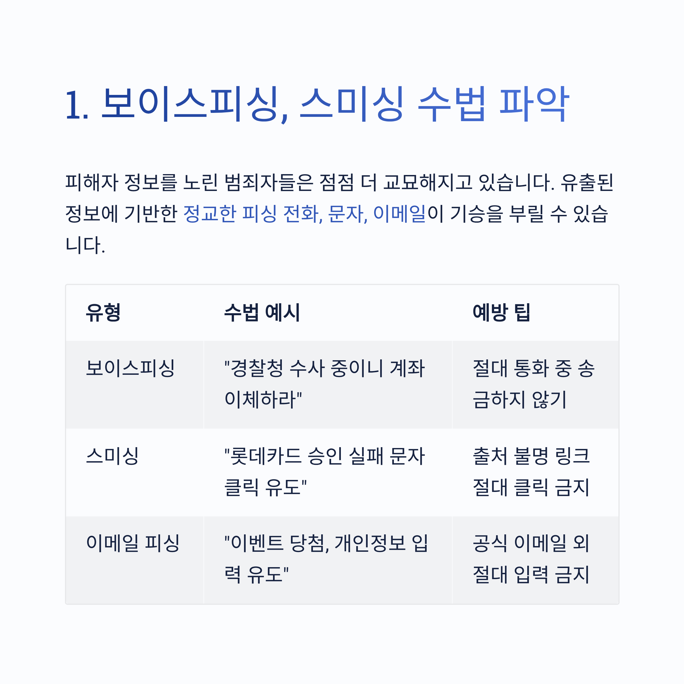 유형 수법 예시 예방 팁