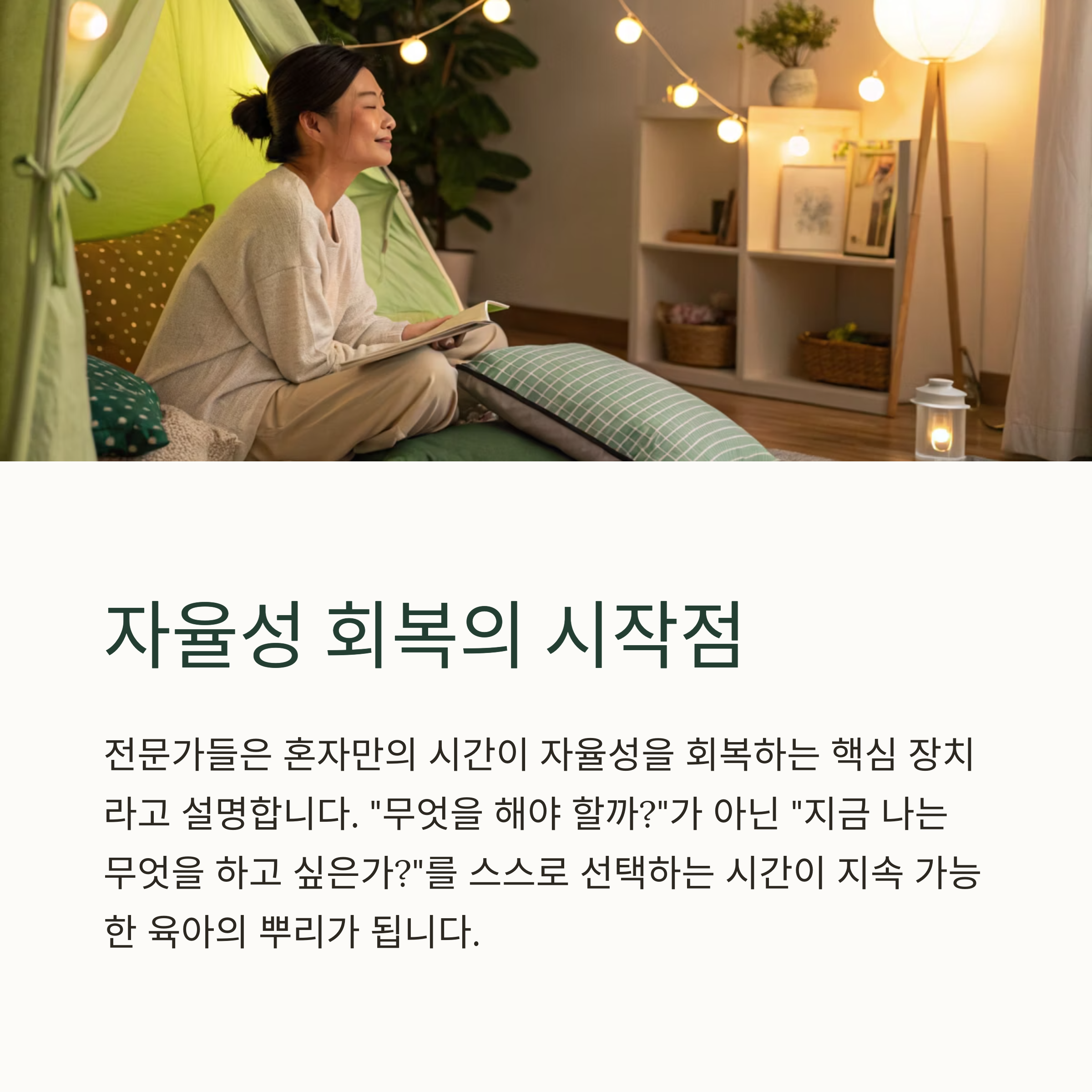 전문가들은 혼자만의 시간이 자율성을 회복하는 핵심 장치라고 설명합니다.