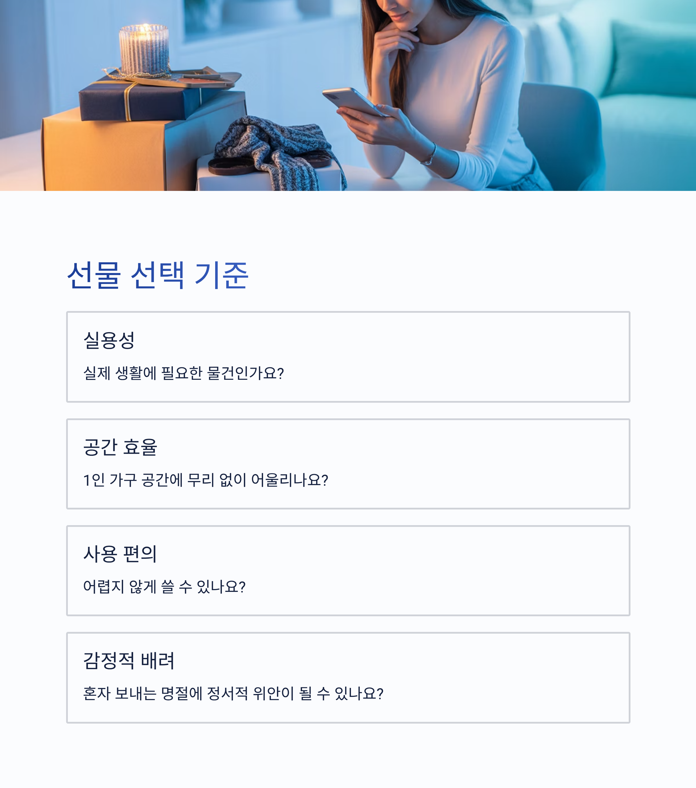💡 혼자 사는 직장인을 위한 선물 선택 기준은?