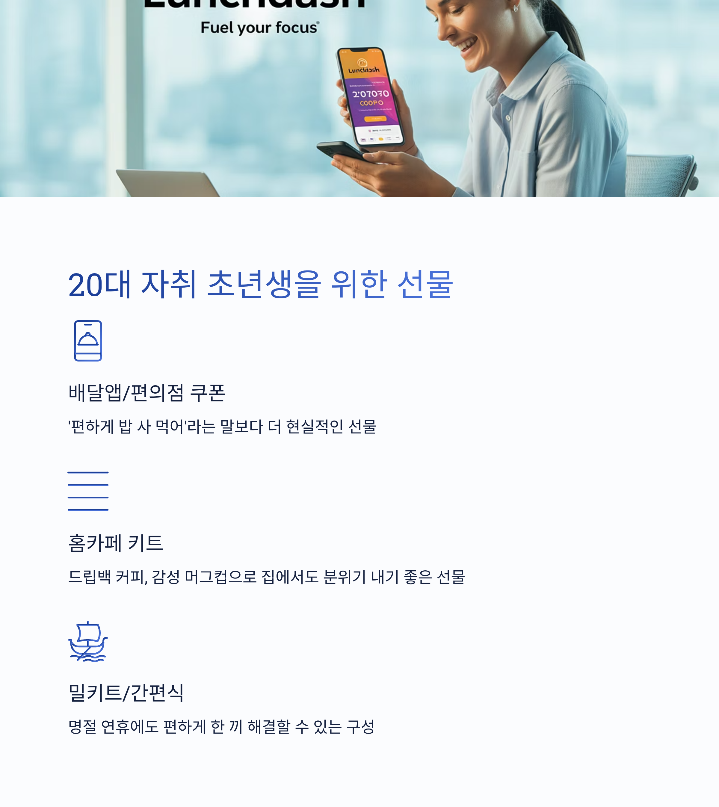 | 20대 | 배달앱 쿠폰, 홈카페 키트, 밀키트 |