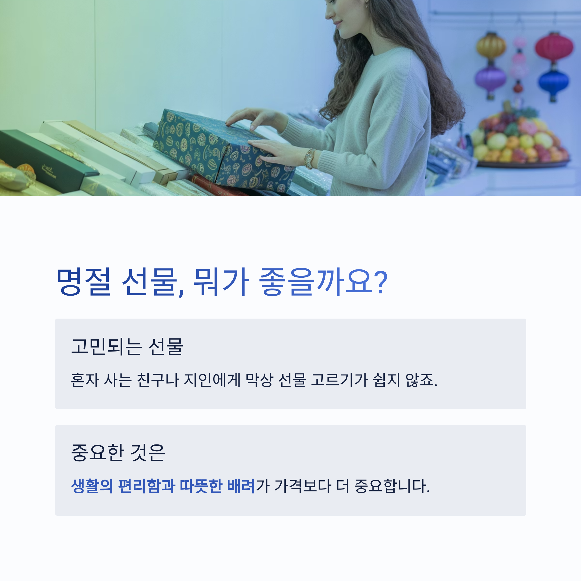 “명절이니까 뭐라도 챙겨줘야 할 것 같긴 한데, 뭐가 좋을까?”