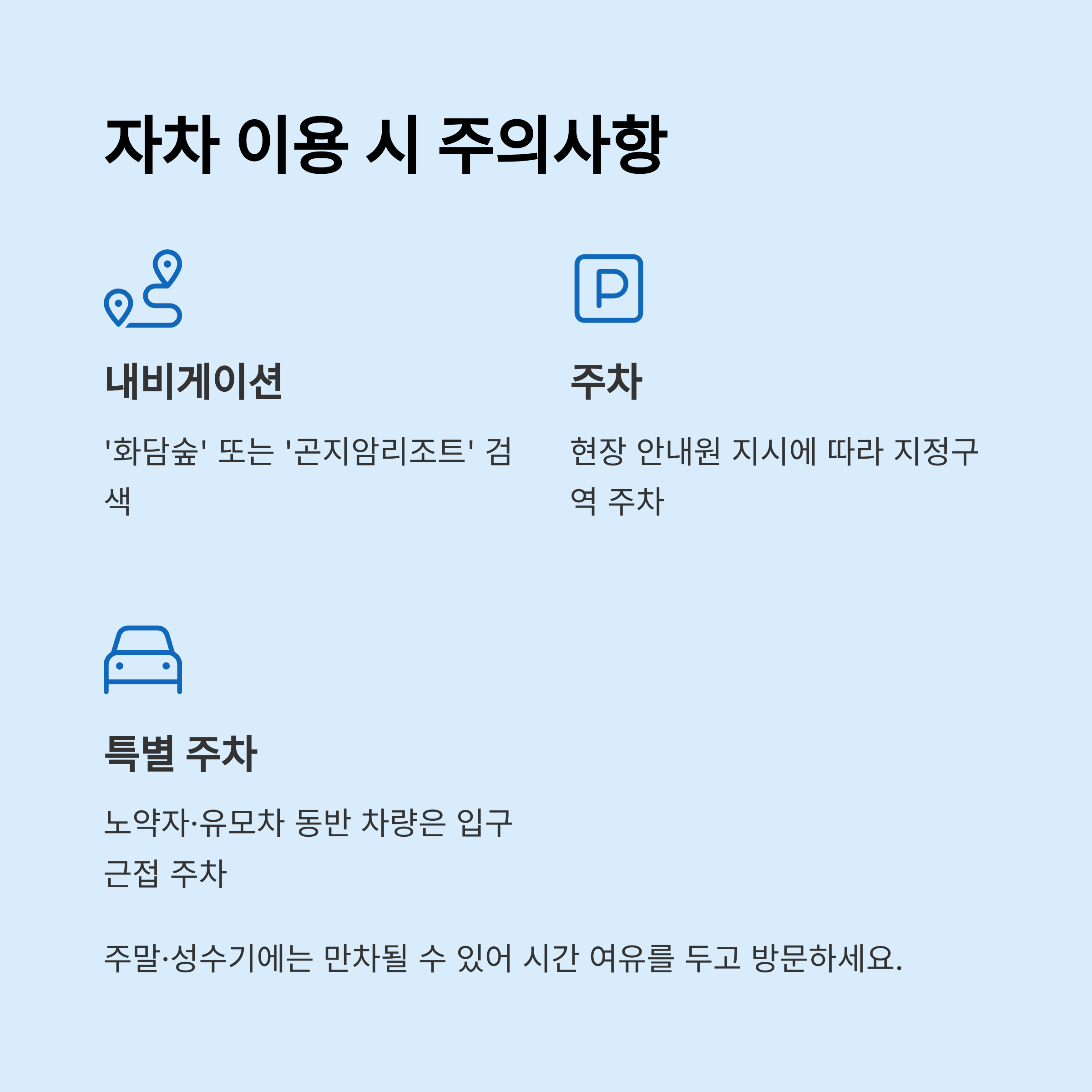 - 내비게이션 목적지: 화담숲 정문 주차장 입력