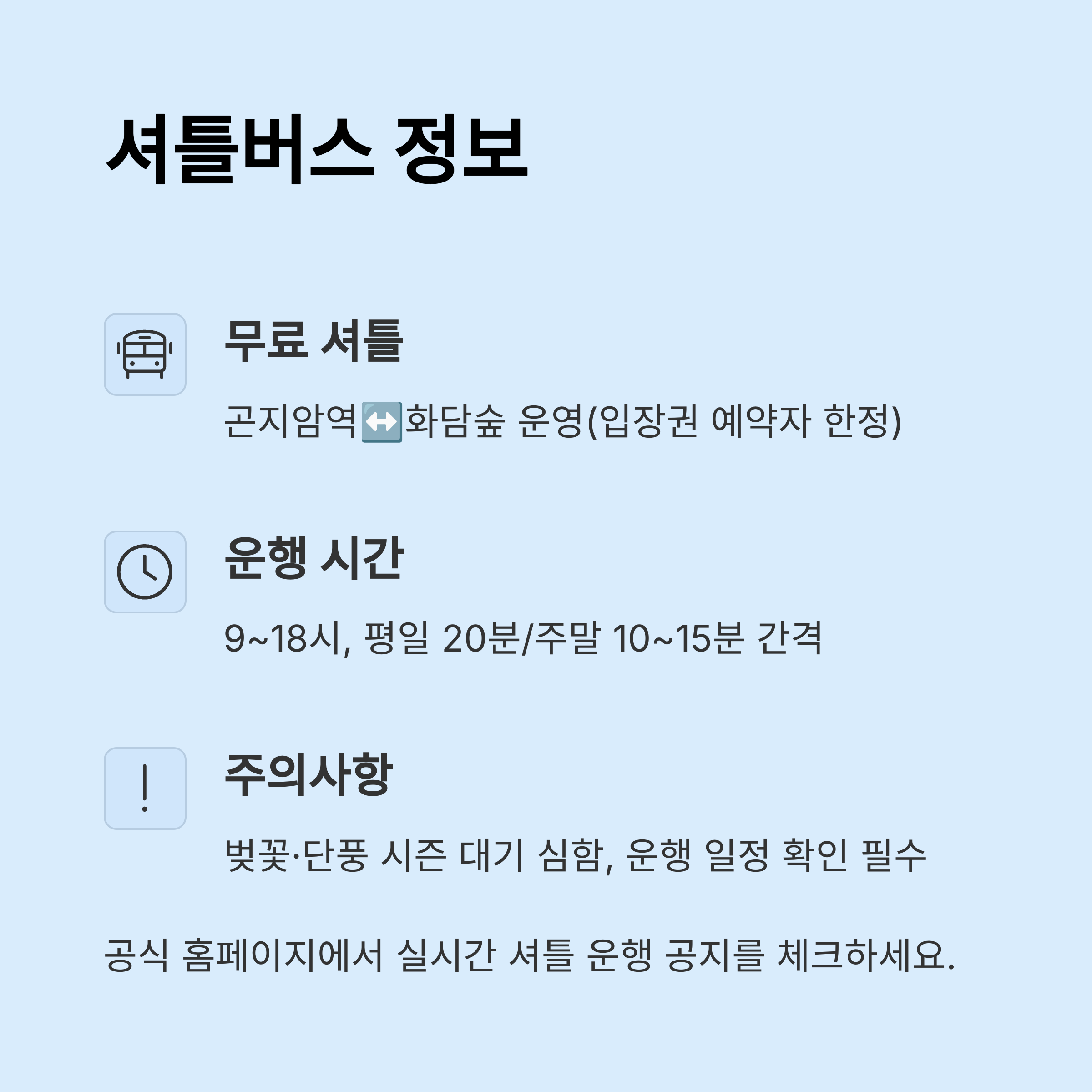 | 화담숲 셔틀버스 운영 현황 총정리 (1) | 2025.04.26 |