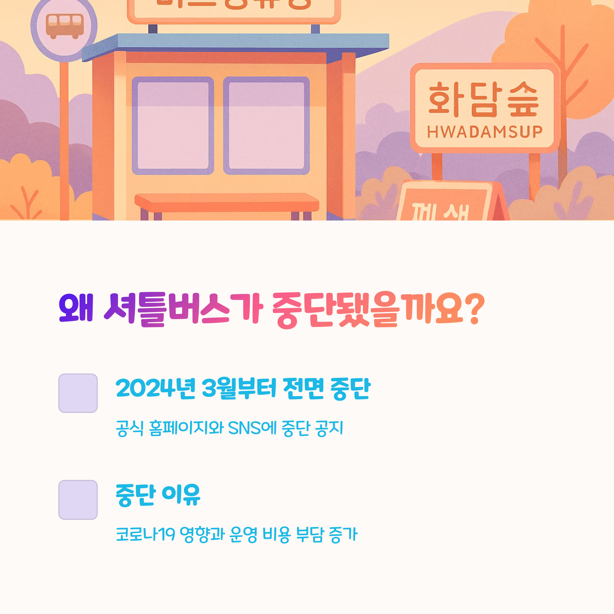 - 코로나19 여파 이후 셔틀 운행 재개 미확정