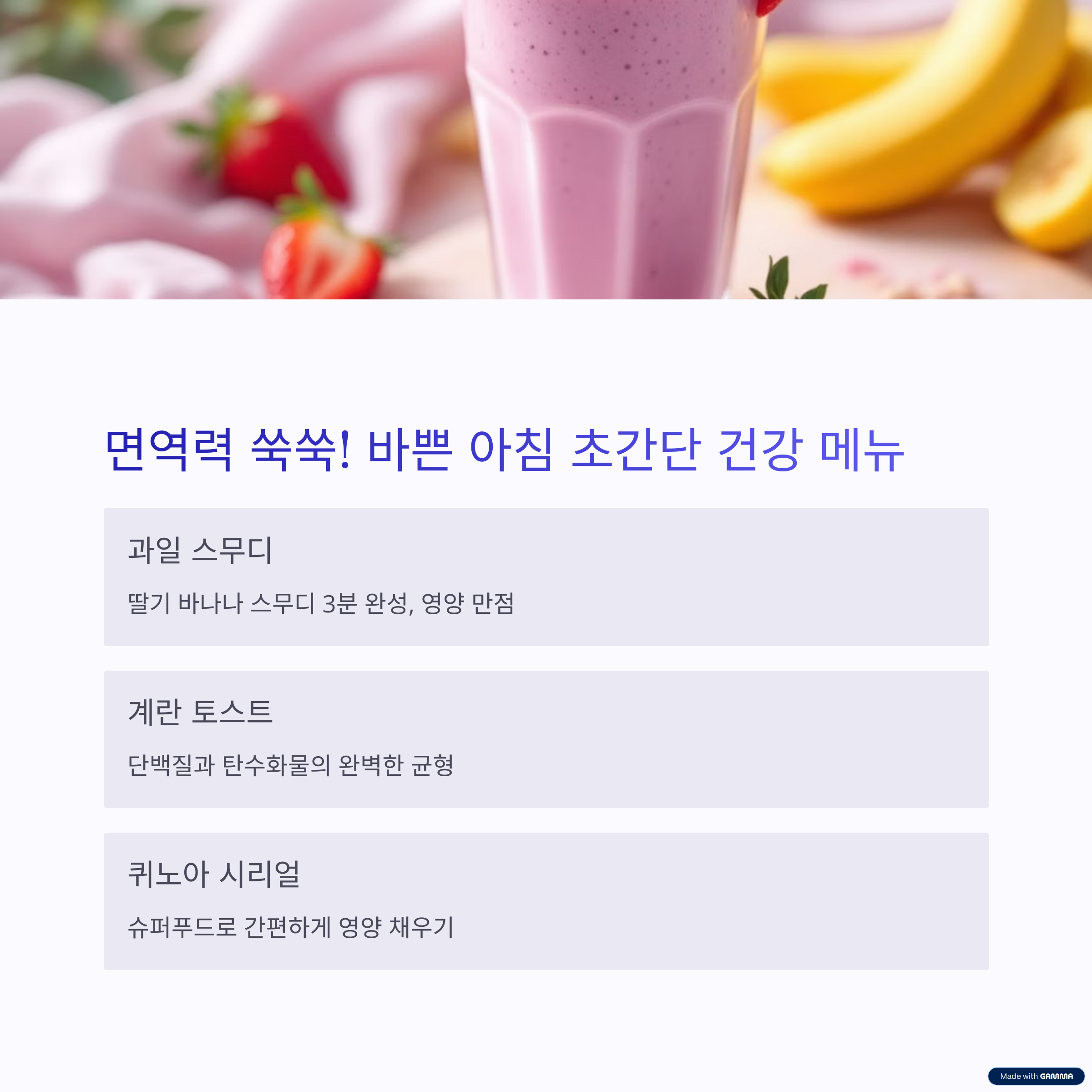 바쁜 아침엔 간단하면서도 영양 가득한 메뉴가 필요하죠.
