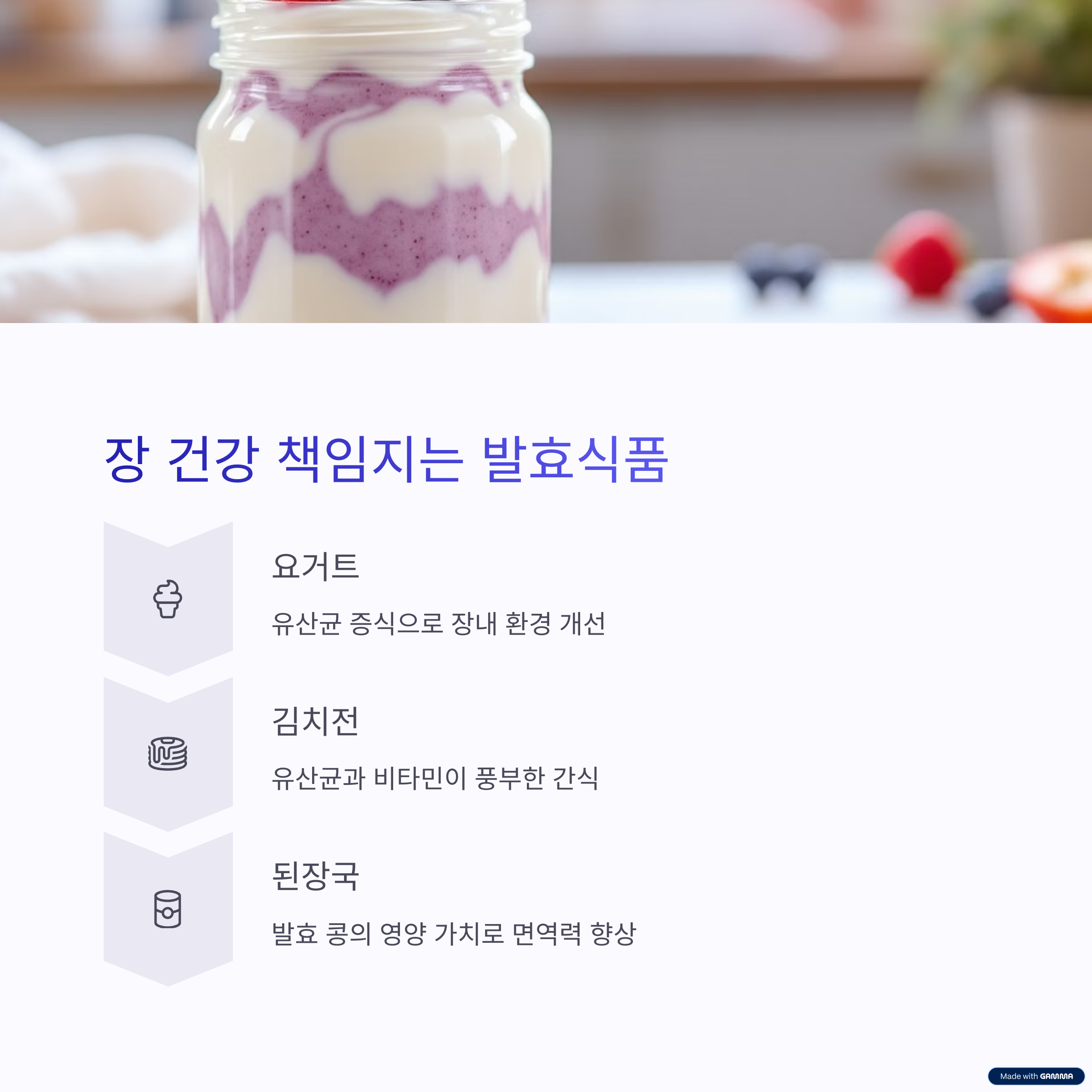 요거트, 김치, 청국장 같은 발효식품은