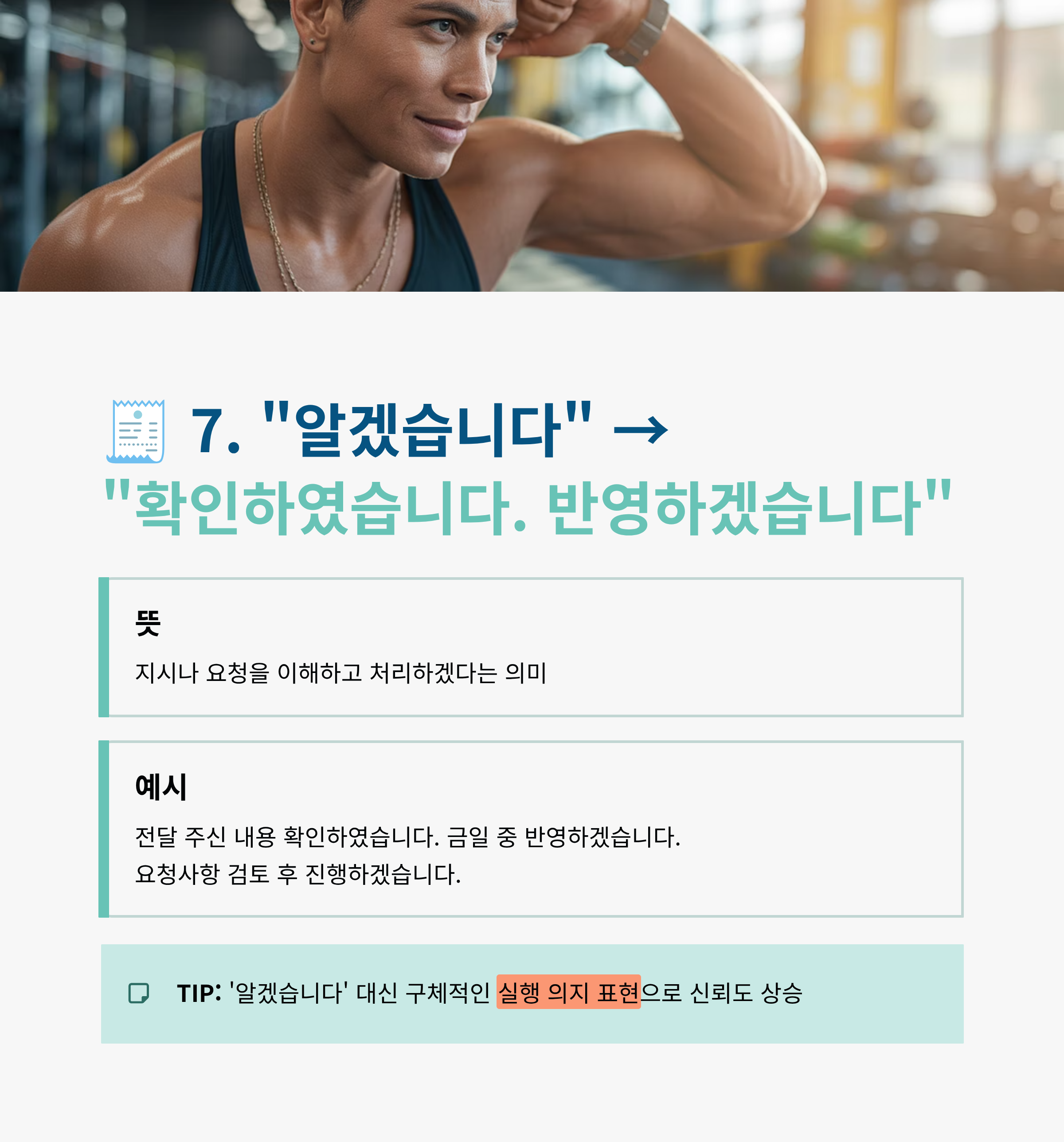 🧾 7. “알겠습니다” → “확인하였습니다. 반영하겠습니다.”