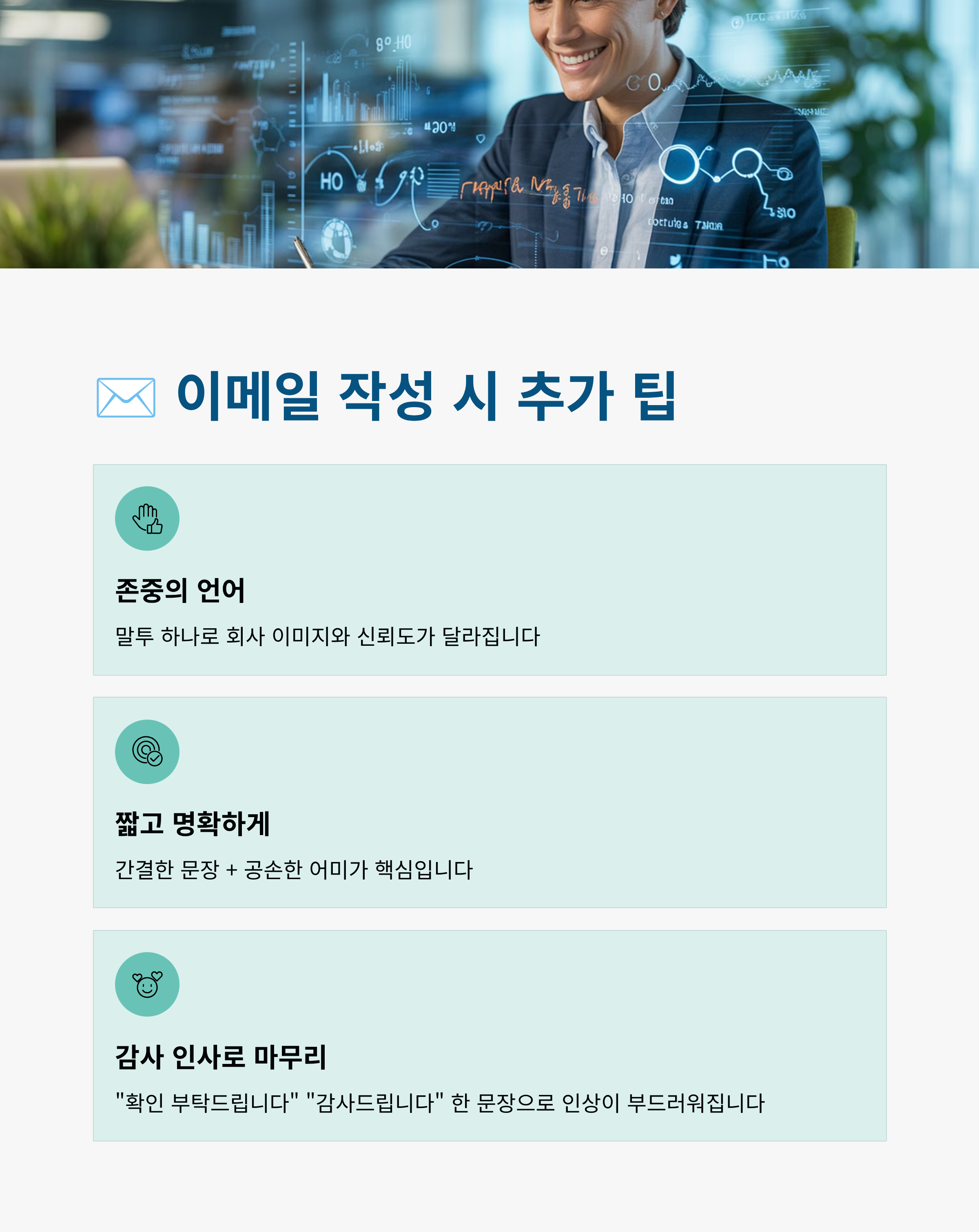 이메일 한 통이 신뢰감과 프로페셔널함을 좌우하는 경우가 많습니다.