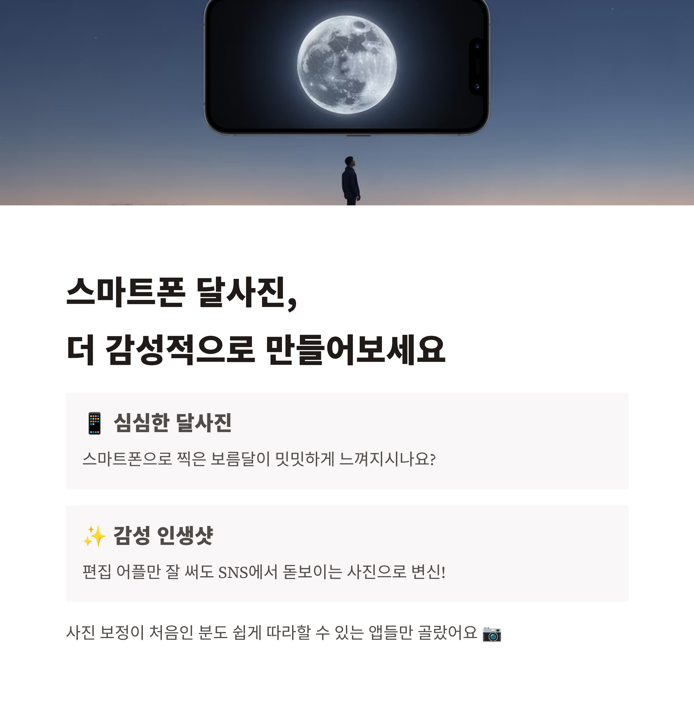 🌕 당신의 스마트폰 사진도 전문가 못지않게 변신할 수 있습니다!