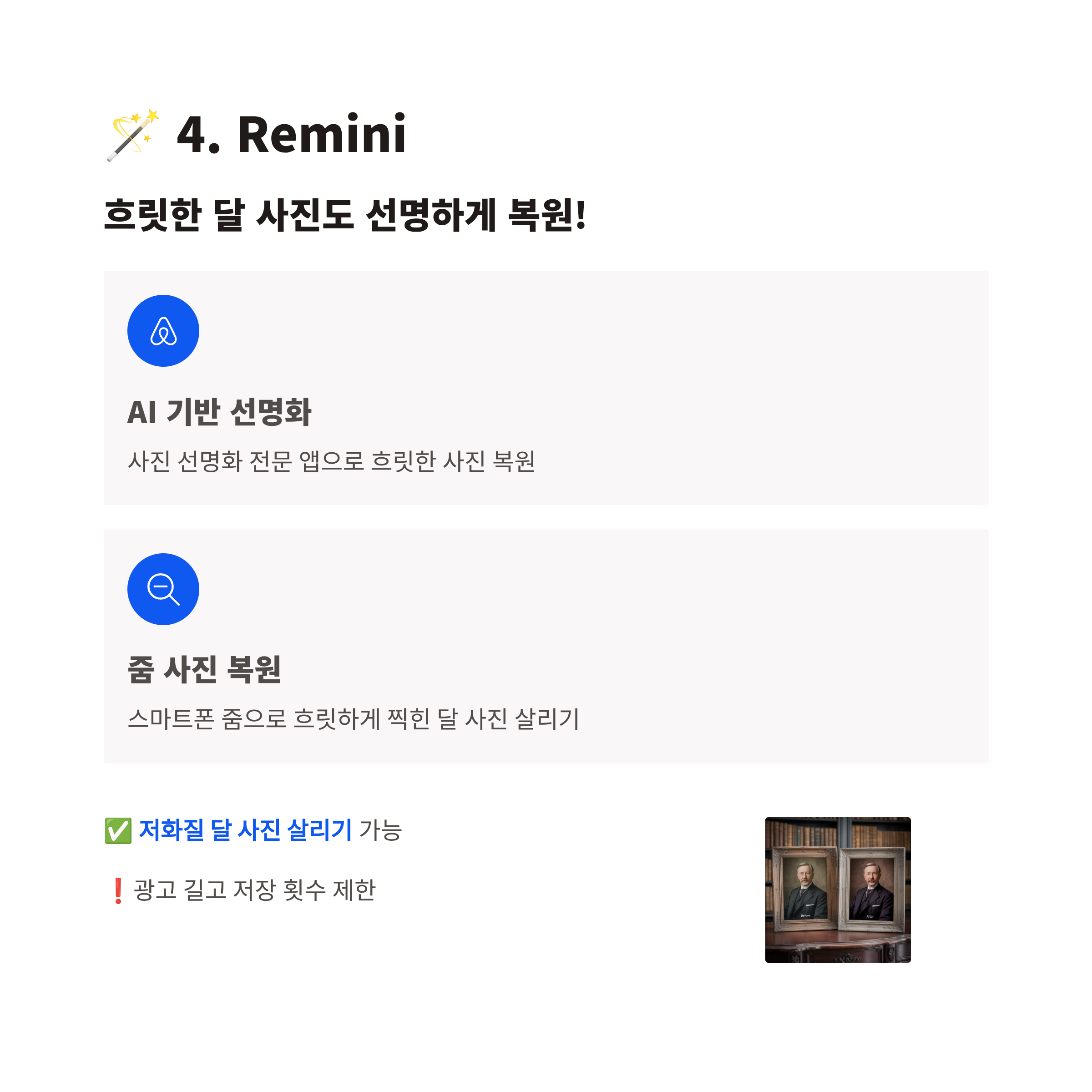 - ✅ 추천 포인트: 저화질 달 사진 살리기 가능