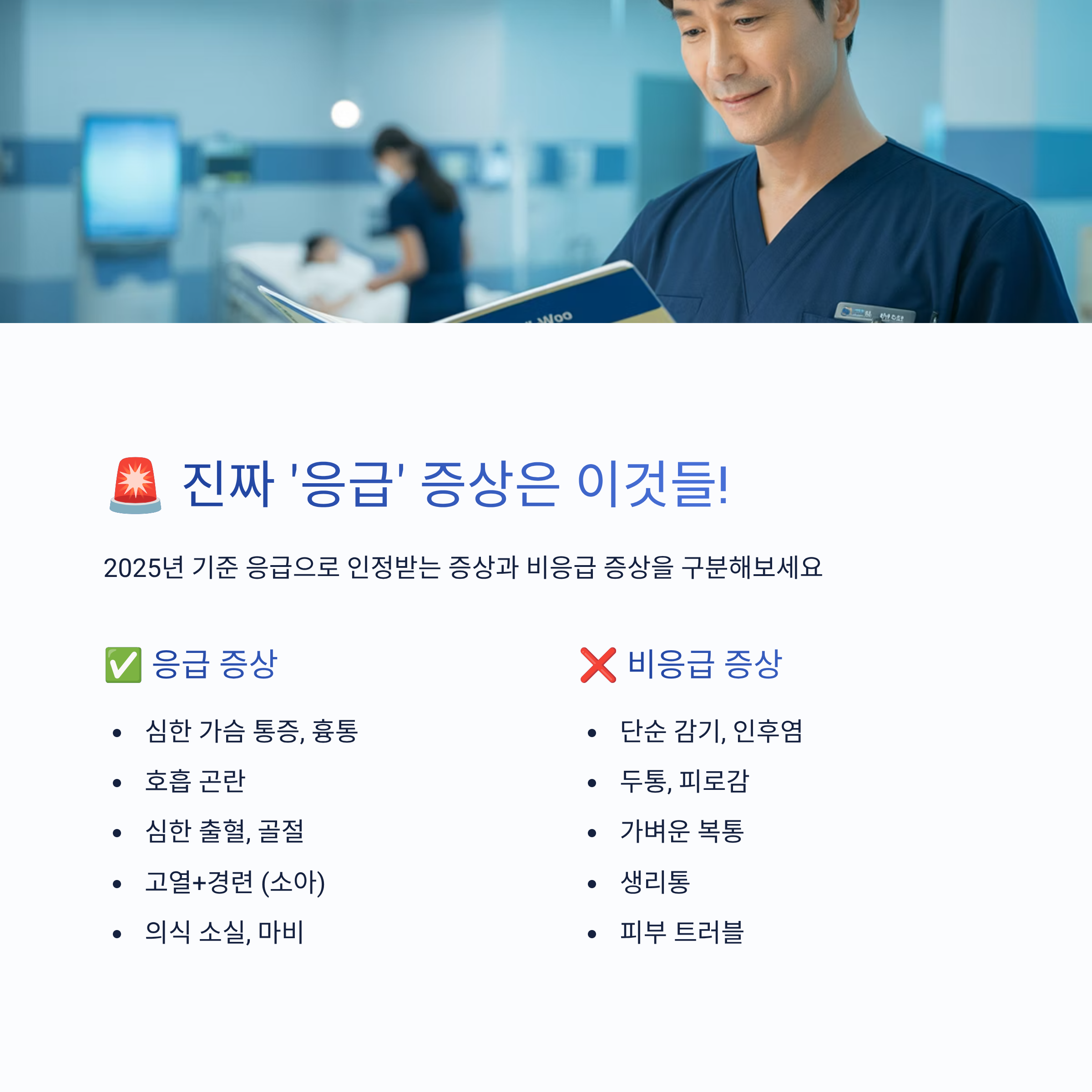 🚨 이런 증상만 ‘응급’으로 인정됩니다 (2025년 기준)