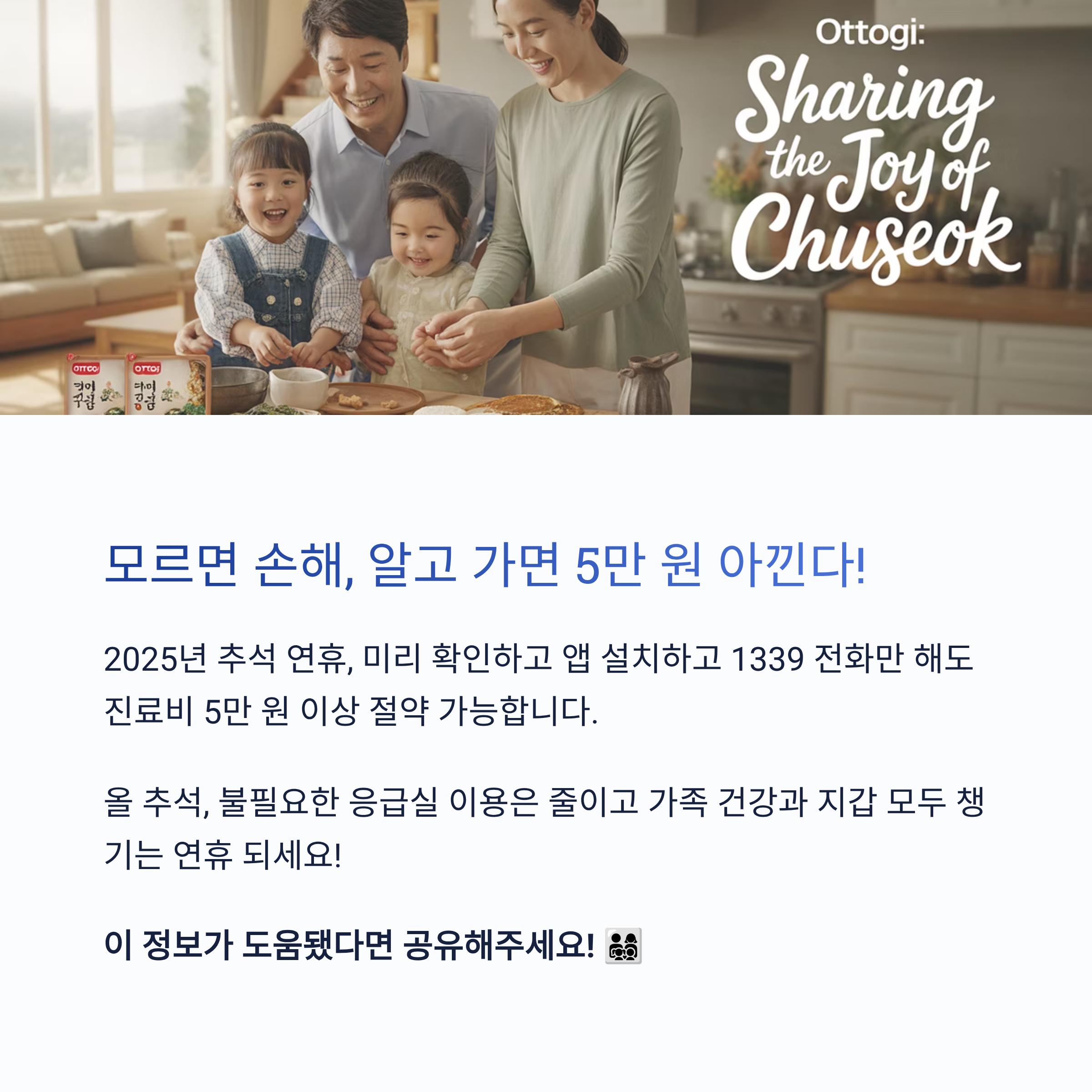가족 건강과 지갑 모두 챙기는 연휴가 되시길 바랍니다!