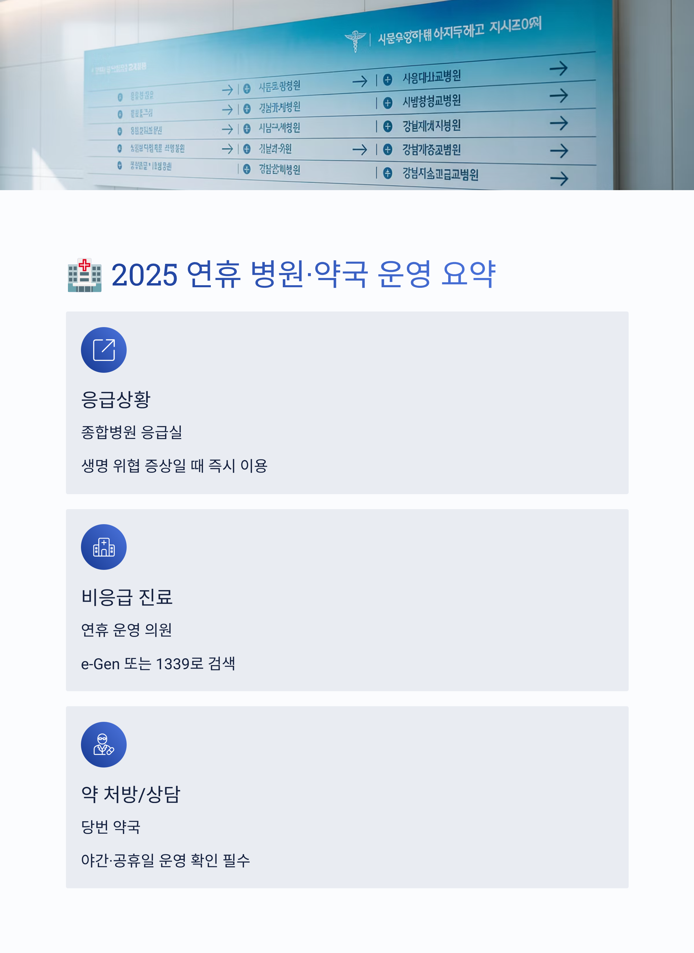 🏥 2025 연휴 병원·약국 운영 요약