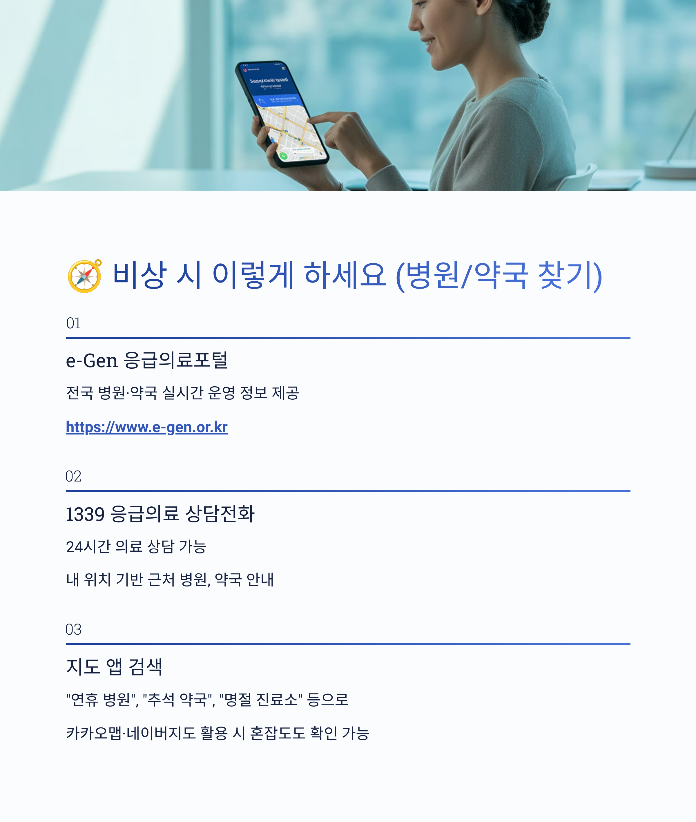 🧭 비상 시 이렇게 하세요 (병원/약국 찾기)