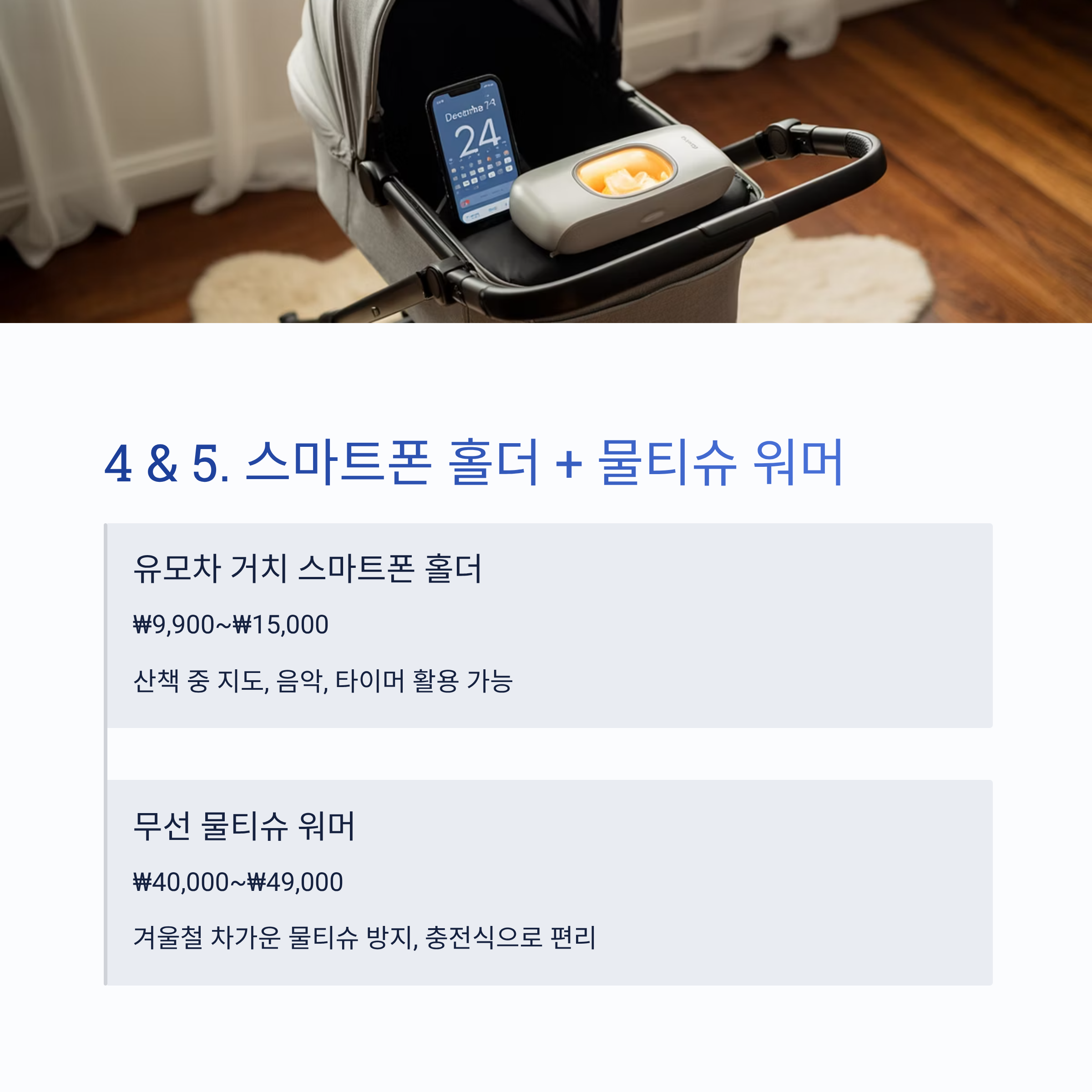 | 산책 겸 통화/지도 | 스마트폰 거치대 | 아기 보며 동시에 가능 |