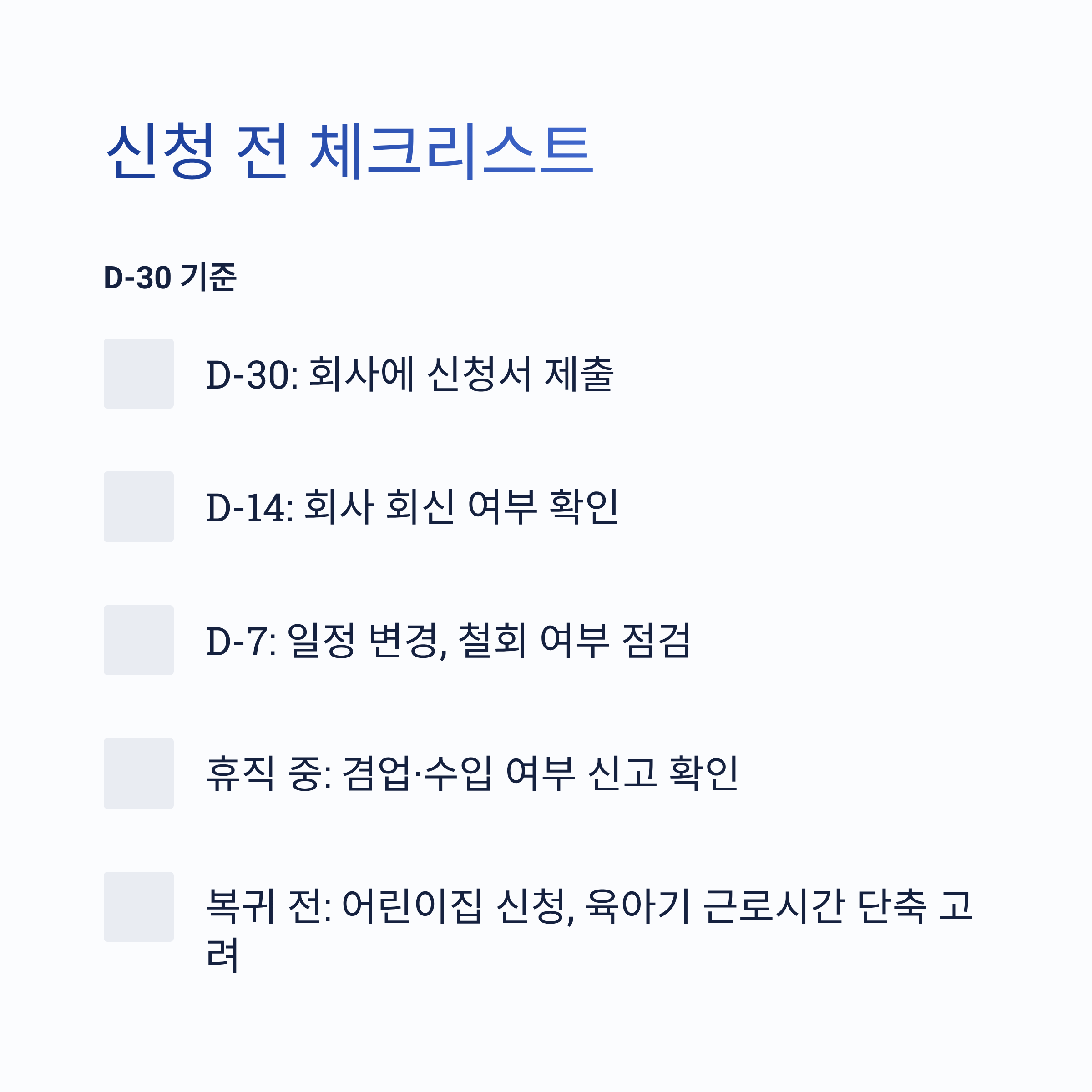 ☑ 복귀 전: 어린이집 신청, 육아기 근로시간 단축 고려