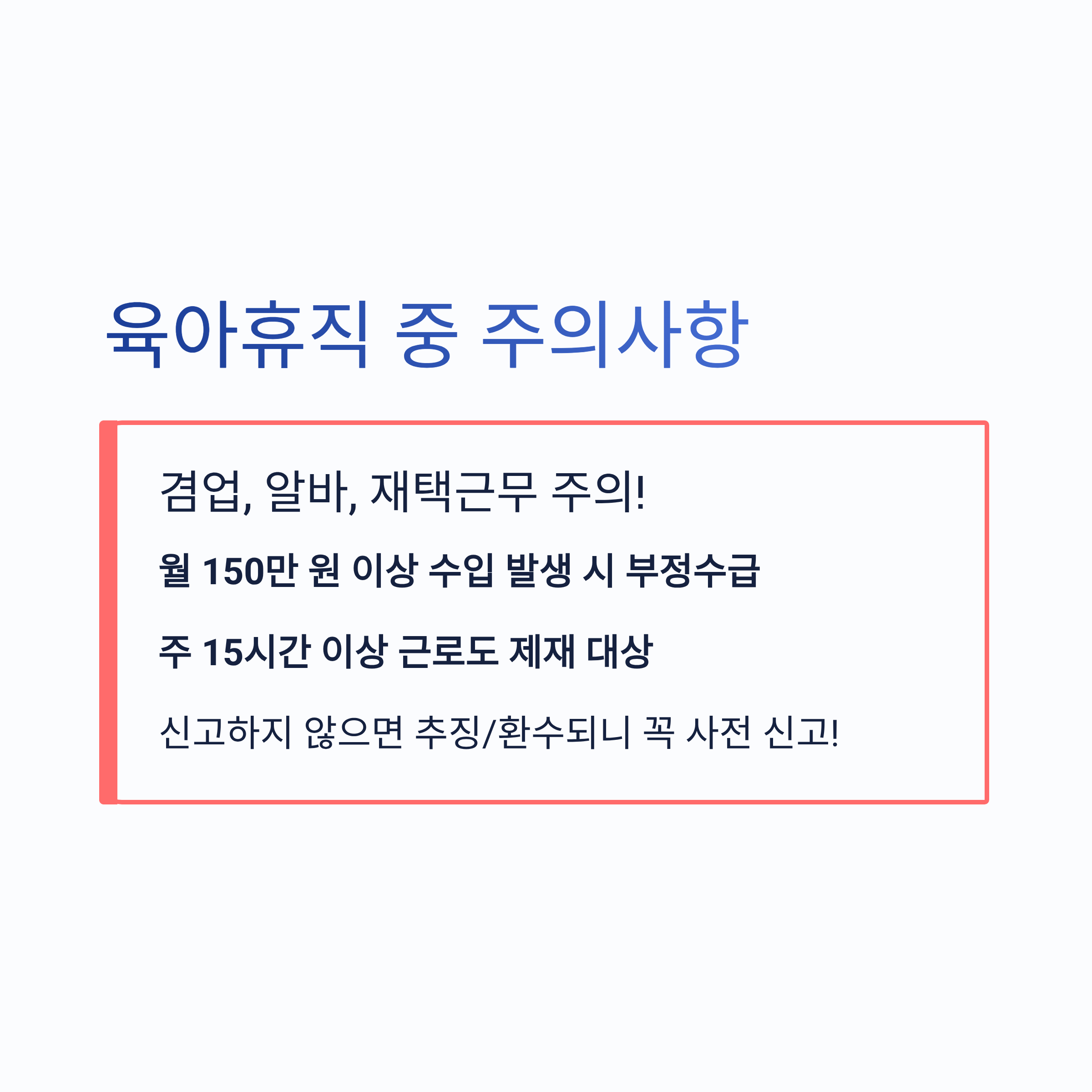 - 신청 시기: 휴직 시작일 기준 최소 30일 전 회사에 신청
