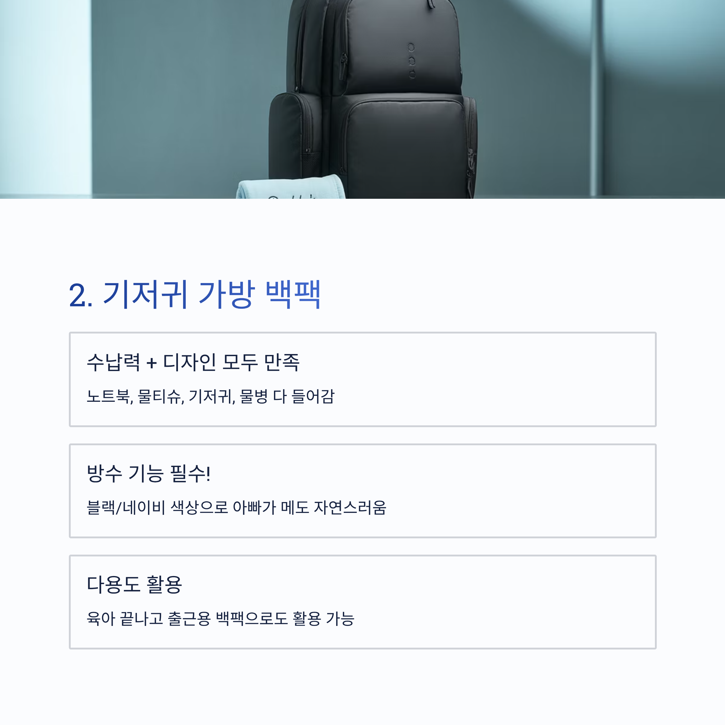 - 육아 끝나고 출근용 백팩으로도 활용 가능