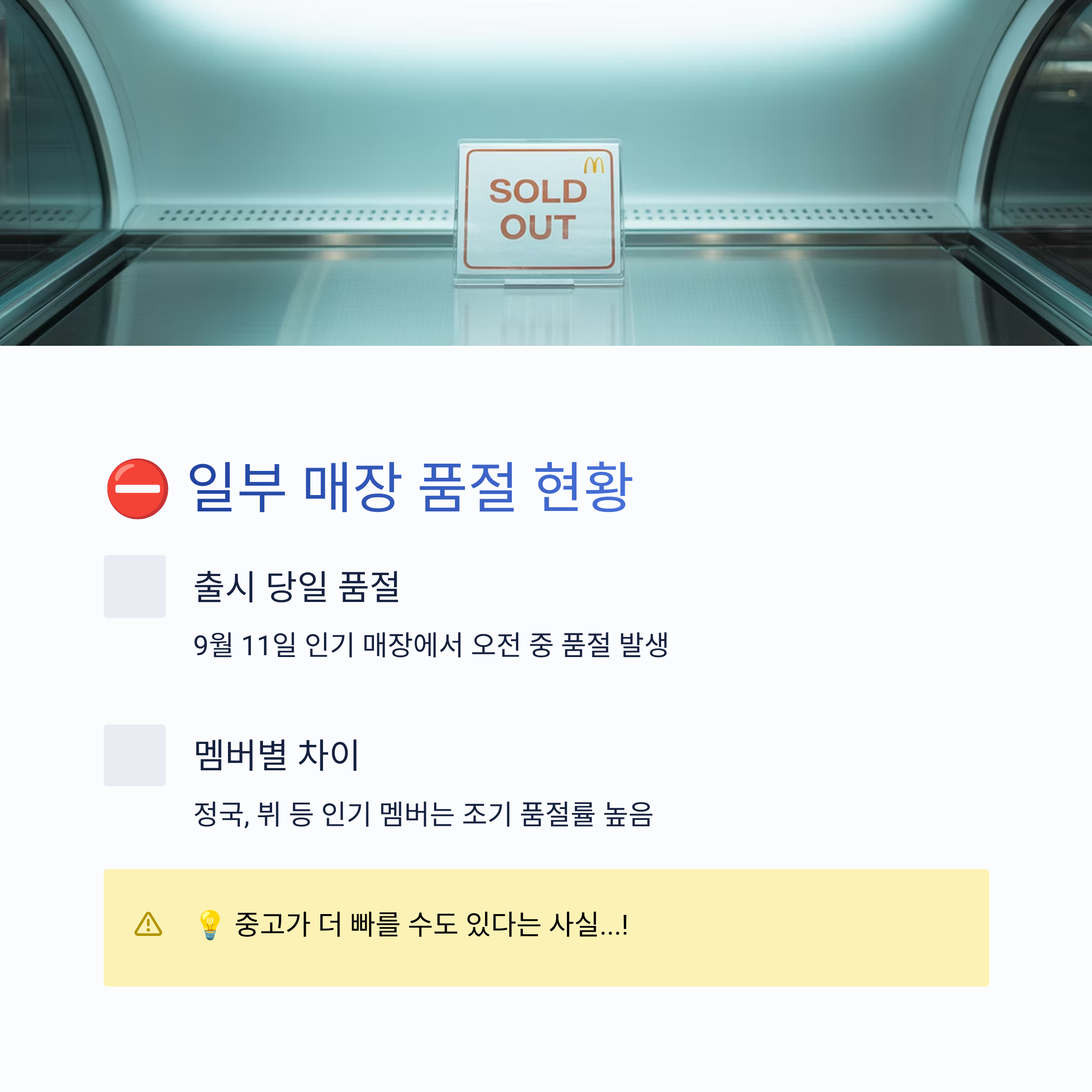 - 인기 매장에서는 오픈 첫날부터 품절 사례 발생