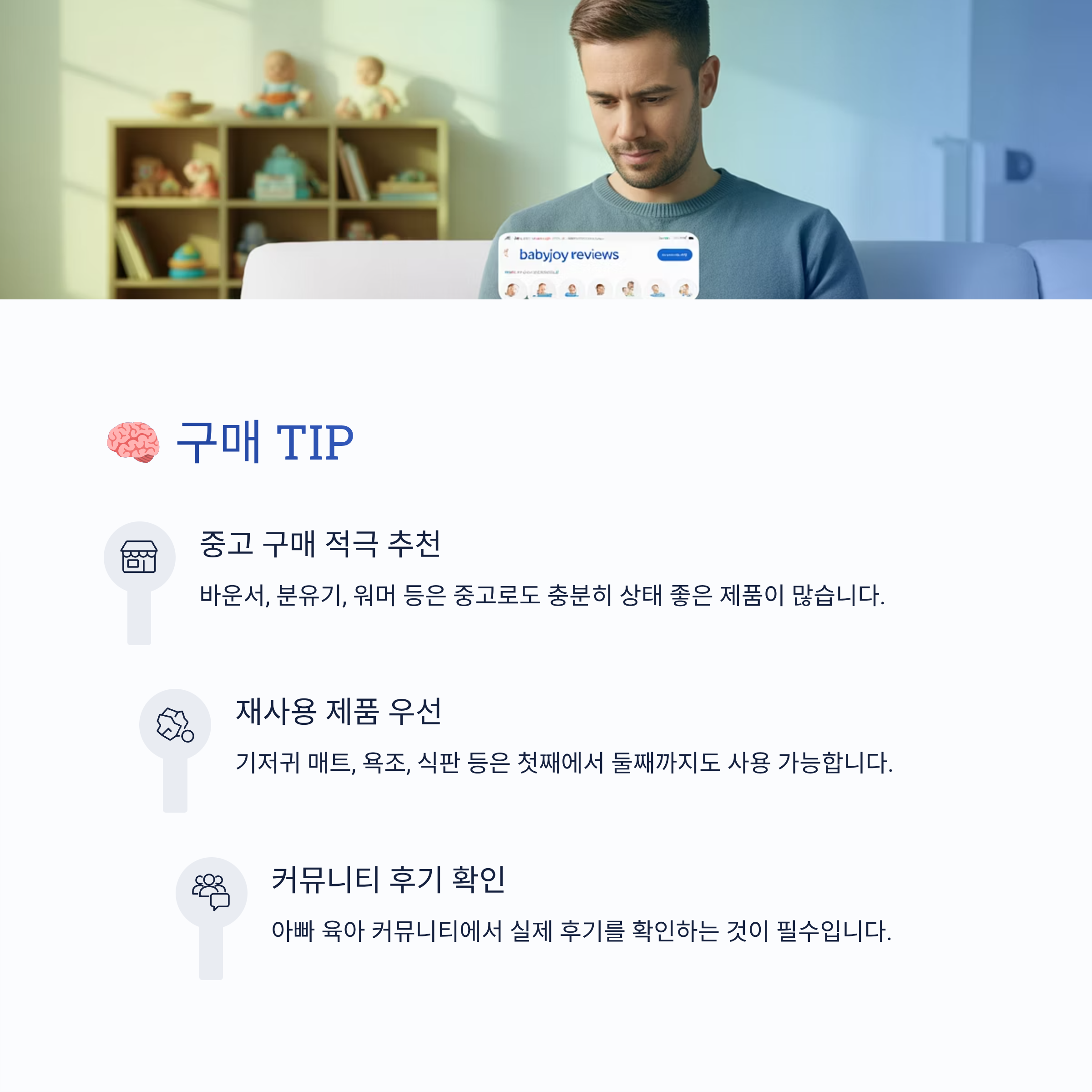 - 중고 구매 적극 추천: 바운서, 분유기, 워머 등은 중고로도 충분히 상태 좋은 제품 다수