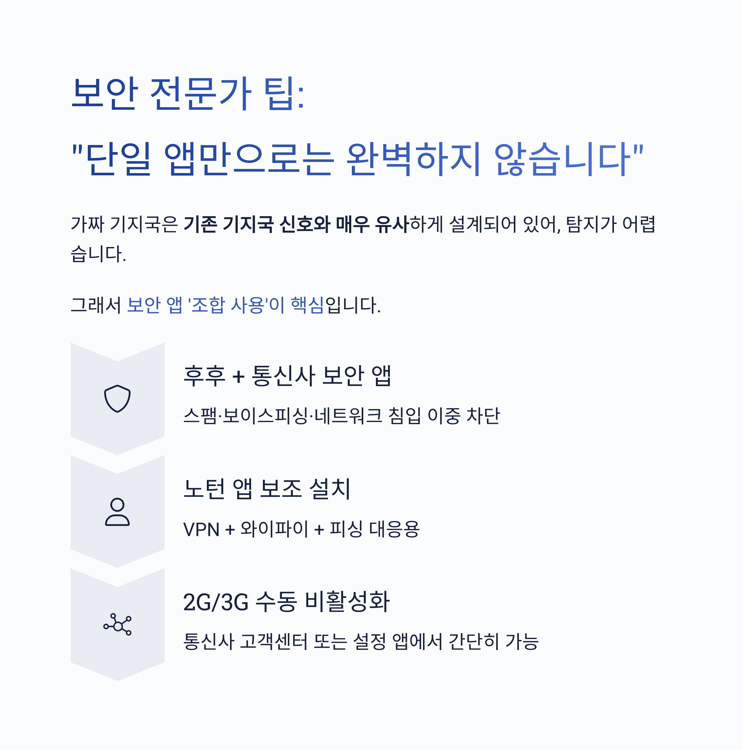 - ✅ 통신사 보안앱으로 기지국 이상 감시 활성화