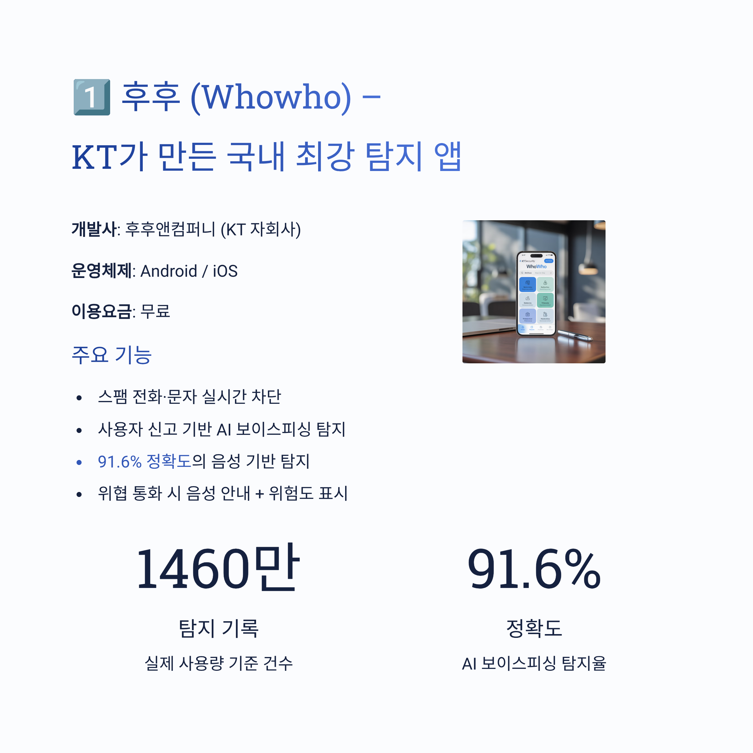 1️⃣ 후후 (Whowho) – KT가 만든 국내 최강 탐지 앱