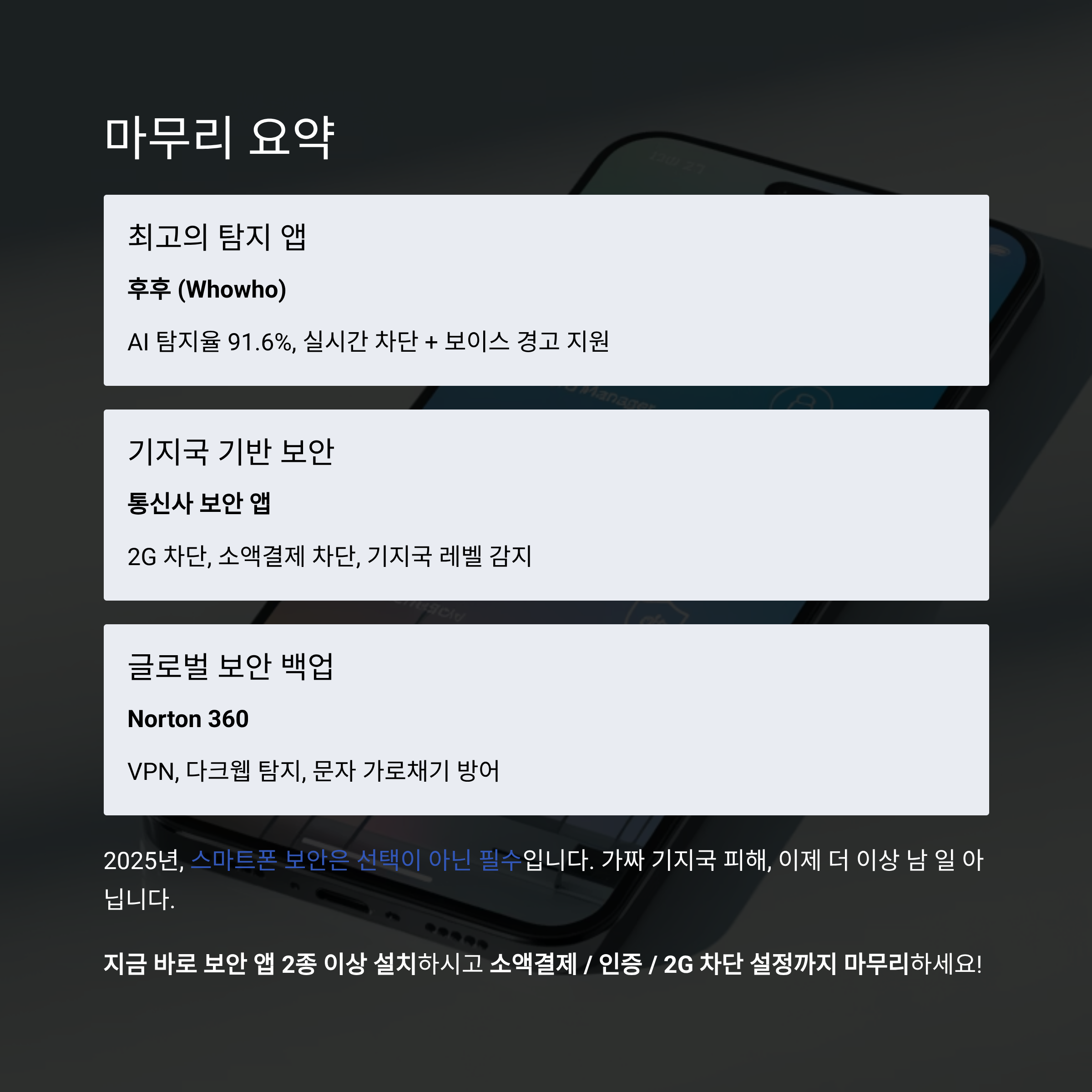 📌 지금 바로 보안 앱 2종 이상 설치하시고