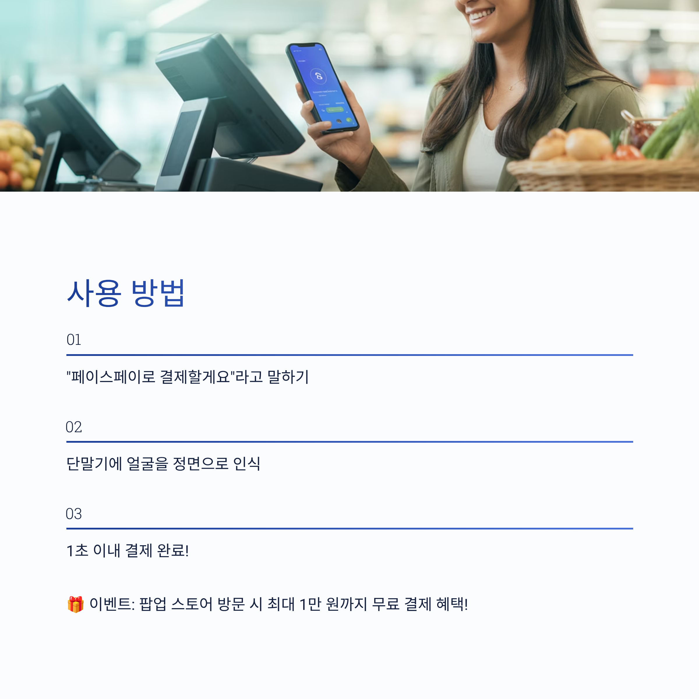 - 결제 시 직원에게 "페이스페이로 결제할게요"라고 말해주세요.