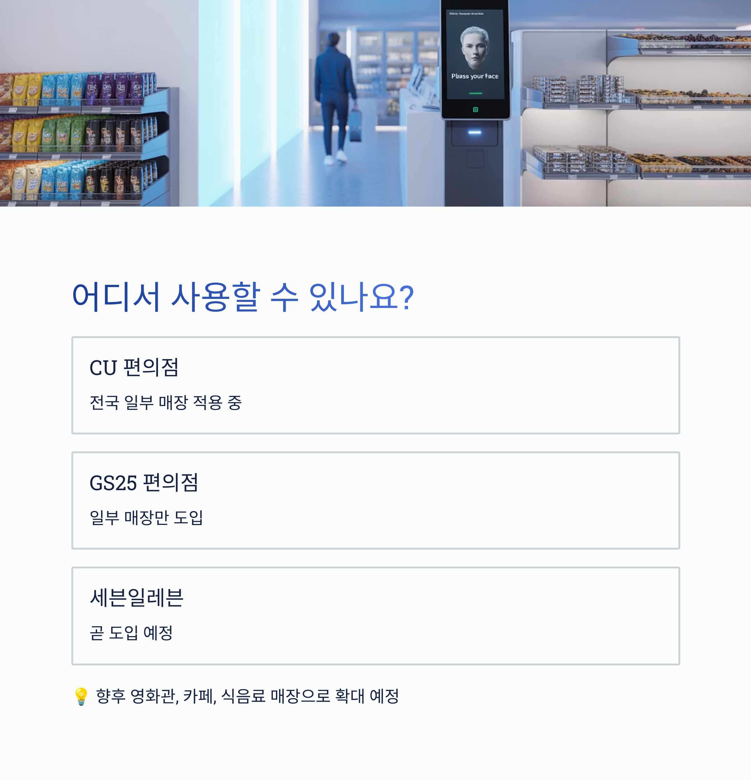 | 결제 방식 | 전용 단말기 앞 얼굴 인식 |