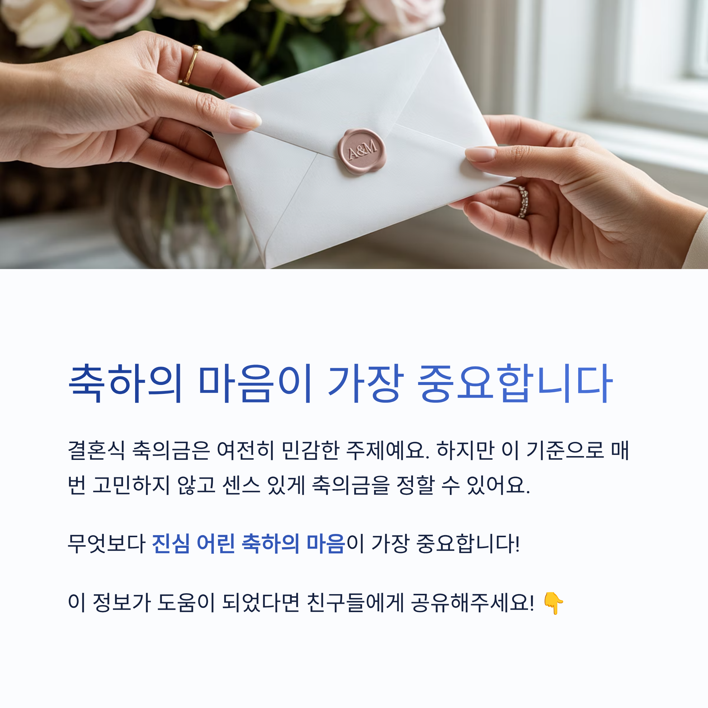 저 역시 한동안 축의금 봉투 앞에서 고민을 많이 했습니다.