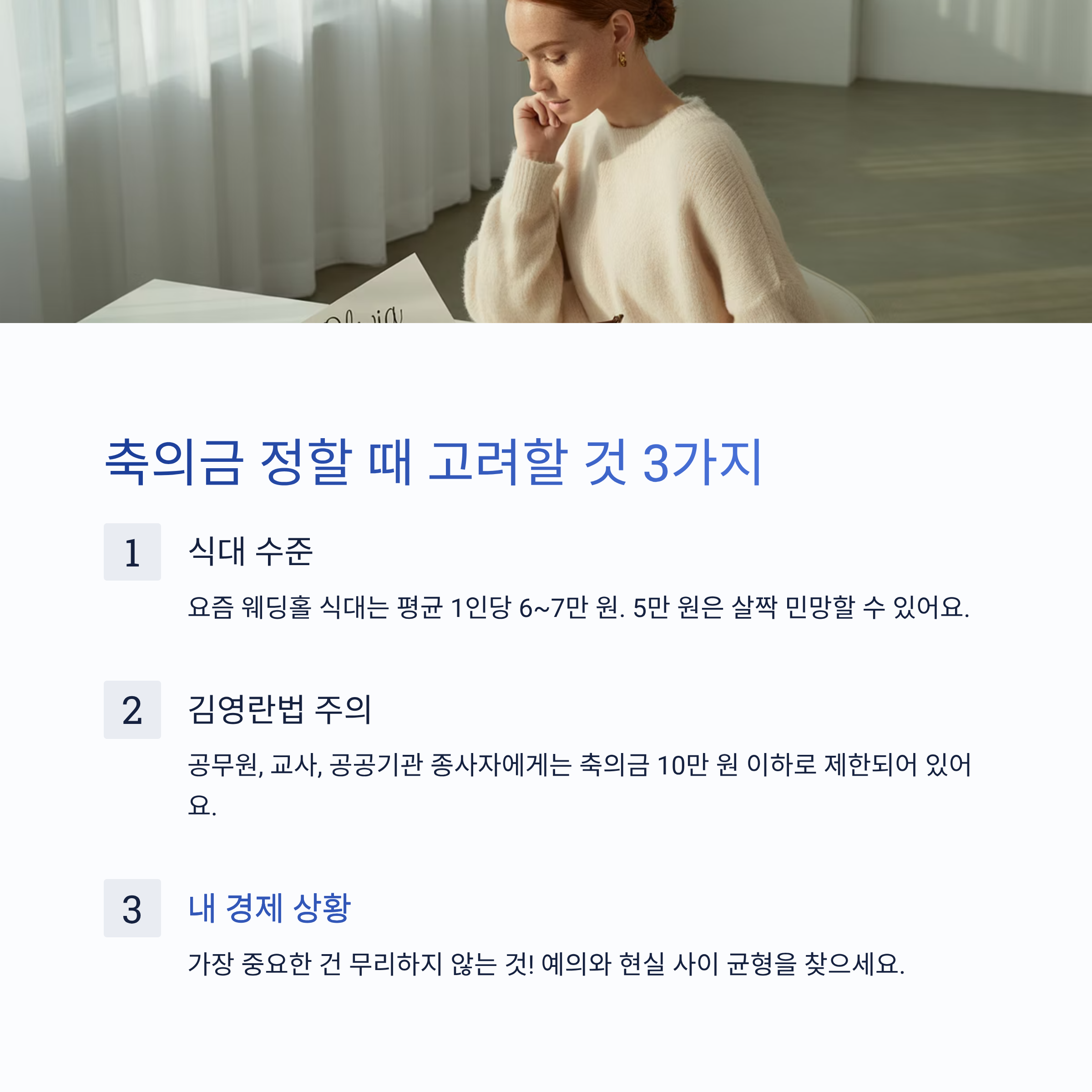 매번 고민하지 않고도 센스 있게 축의금을 정할 수 있어요.
