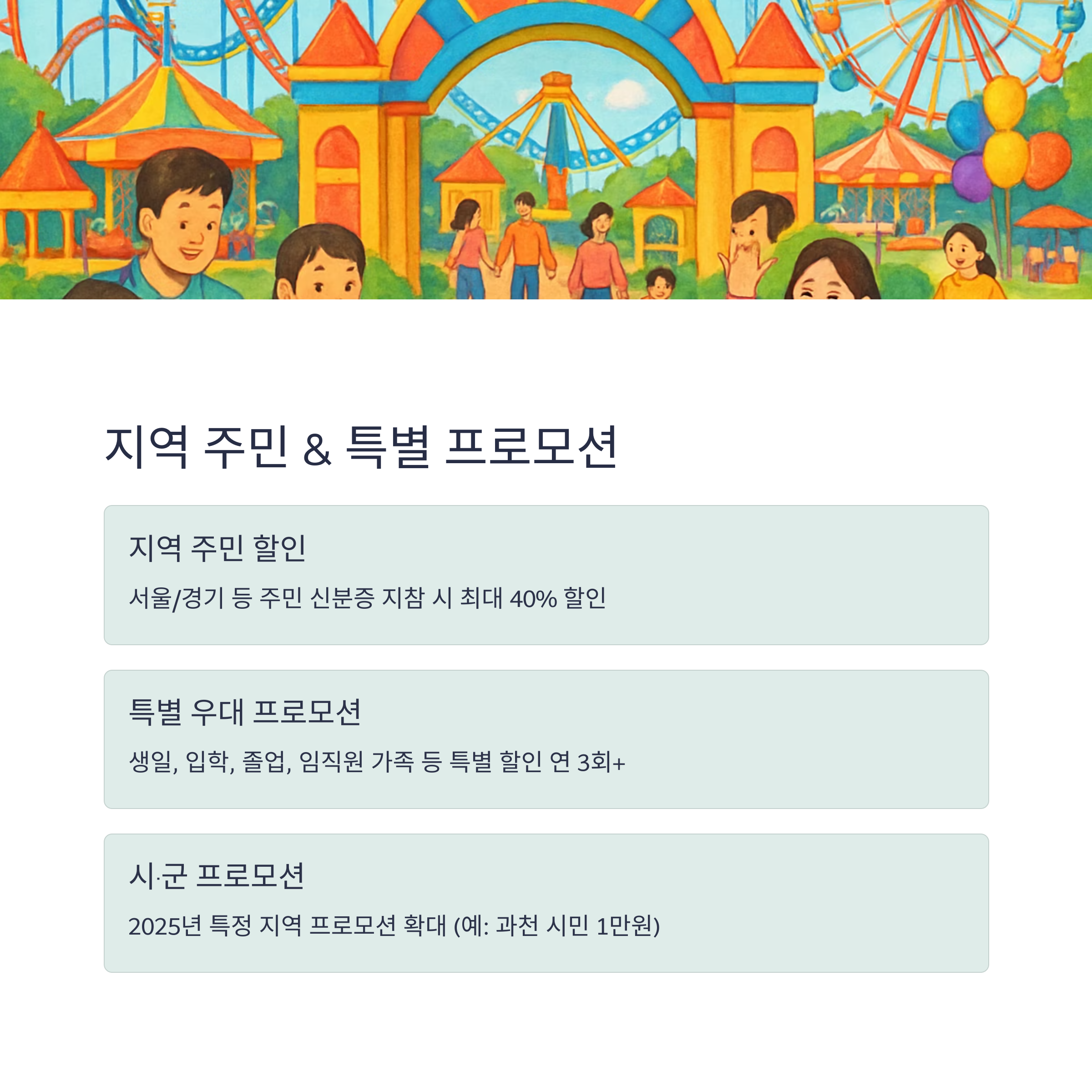- 일부 놀이공원은 지역 주민 대상 특별 할인을 운영합니다.
